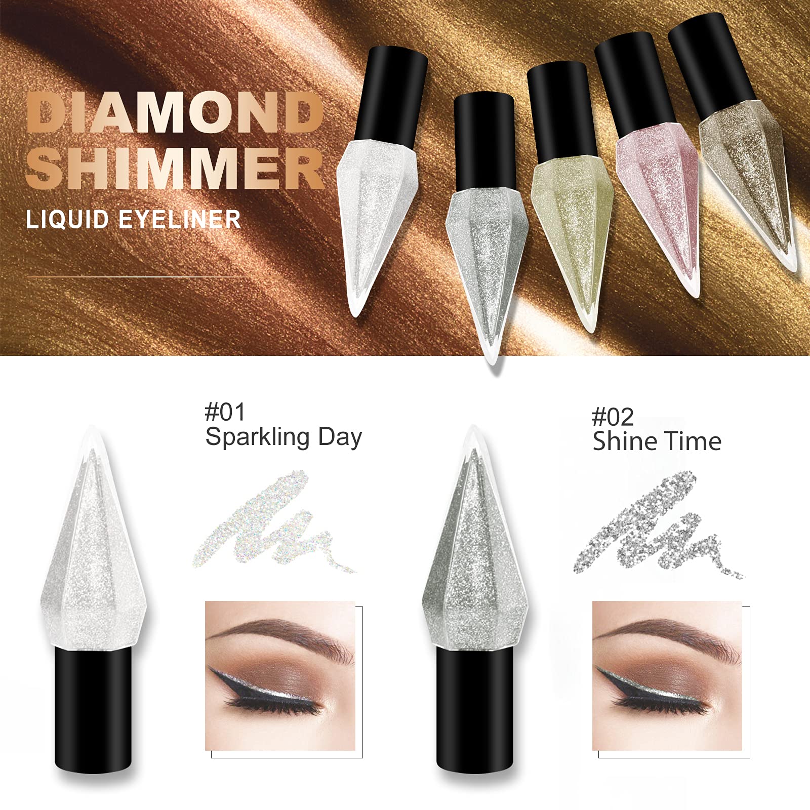 ✨ DIAMOND SHIMMER LIQUID EYELINER This diamond sparkling liquid eyeliner can not only effectively highlight the outline, create gorgeous eye makeup, and make you the focus of attention in various activities. In addition, this eyeliner pen is different from ordinary eyeliner, this glitter eyeliner can also be used as eye shadow or even nail polish. ✨ PERFECT EYE MAKEUP 5 different colors of pearlescent liquid eyeliner, exquisite diamond packaging, soft brush head, can easily apply makeup and quick-drying. It is suitable for birthday parties, stages, parties and other occasions that need to be shiny. ✨ STUNNING COLOURS Each color contains holographic color effects, presenting a truly unique color. Innovative Metallic glow formula, rich pearlescent and colorful elements make it sparkle with brilliant light from all angles. ✨ SKIN-FRIENDLY This eyeliner has a gentle formula, and the makeup is shiny and smooth, does not take off or smudges, and is so light that you can't even feel it. ✨ CRUELTY-FREE We have always advocated the protection of animals. Animals are our friends, so we will never test animals.More Info