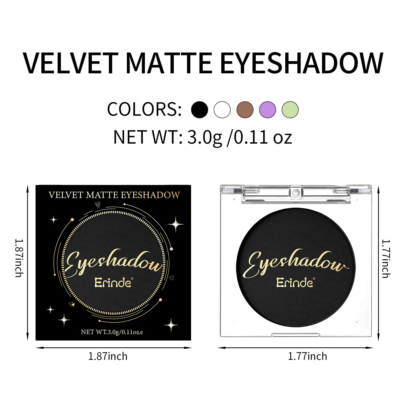 Erinde Light Black Eyeshadow, Mini Matte Eye Shadow, Pressed Powder Eye Palette, Long-Lasting Makeup, Ultra-Blendable, Pigmented Color, Vegan Formula, #01