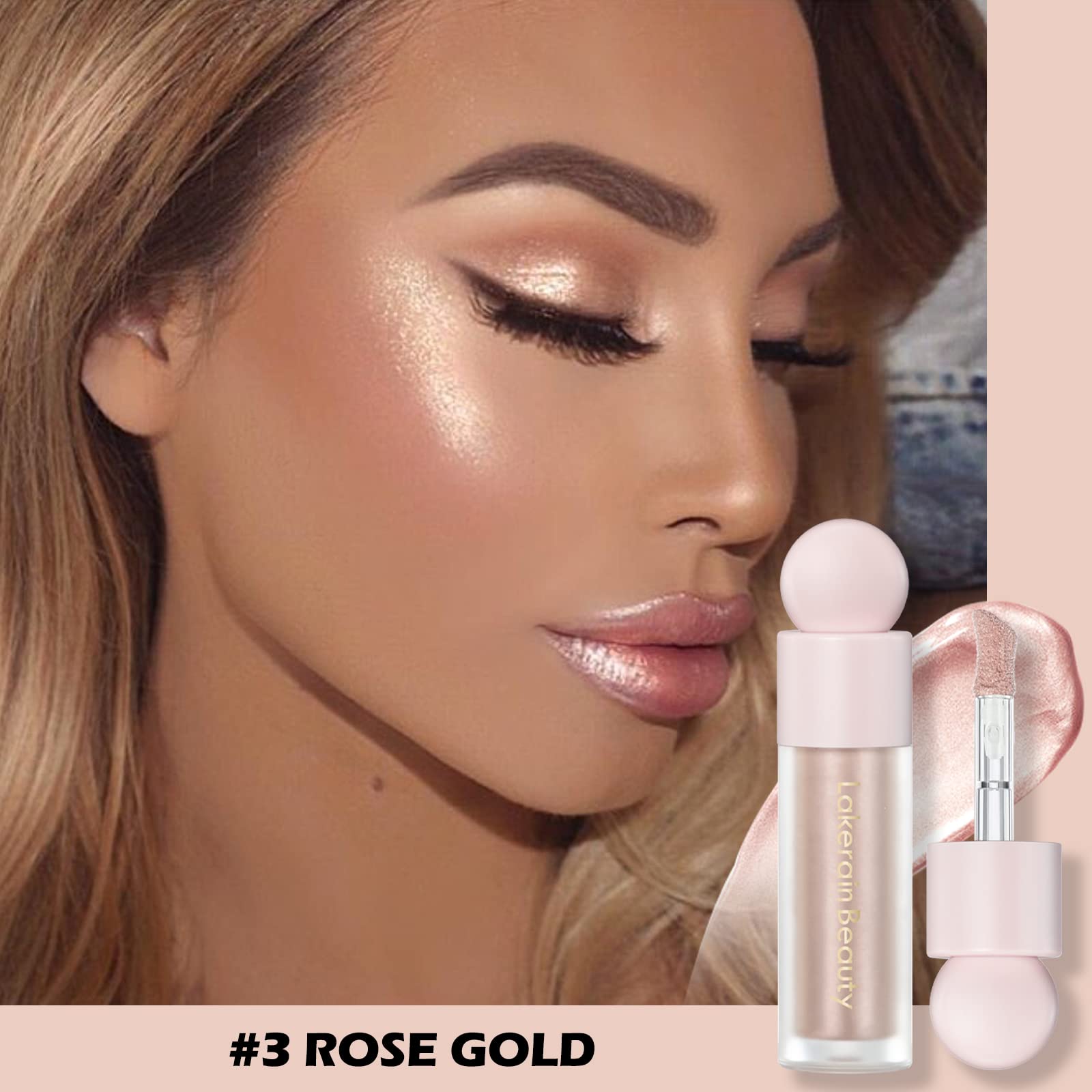 Erinde Liquid Highlighter Makeup, Shimmer Cream Highlighter, Natural Light Face Highlighter, Brightening Liquid Highlight, Face Body Glow Makeup, Glow Drops Makeup, Highlighter Makeup #03 Rose Gold