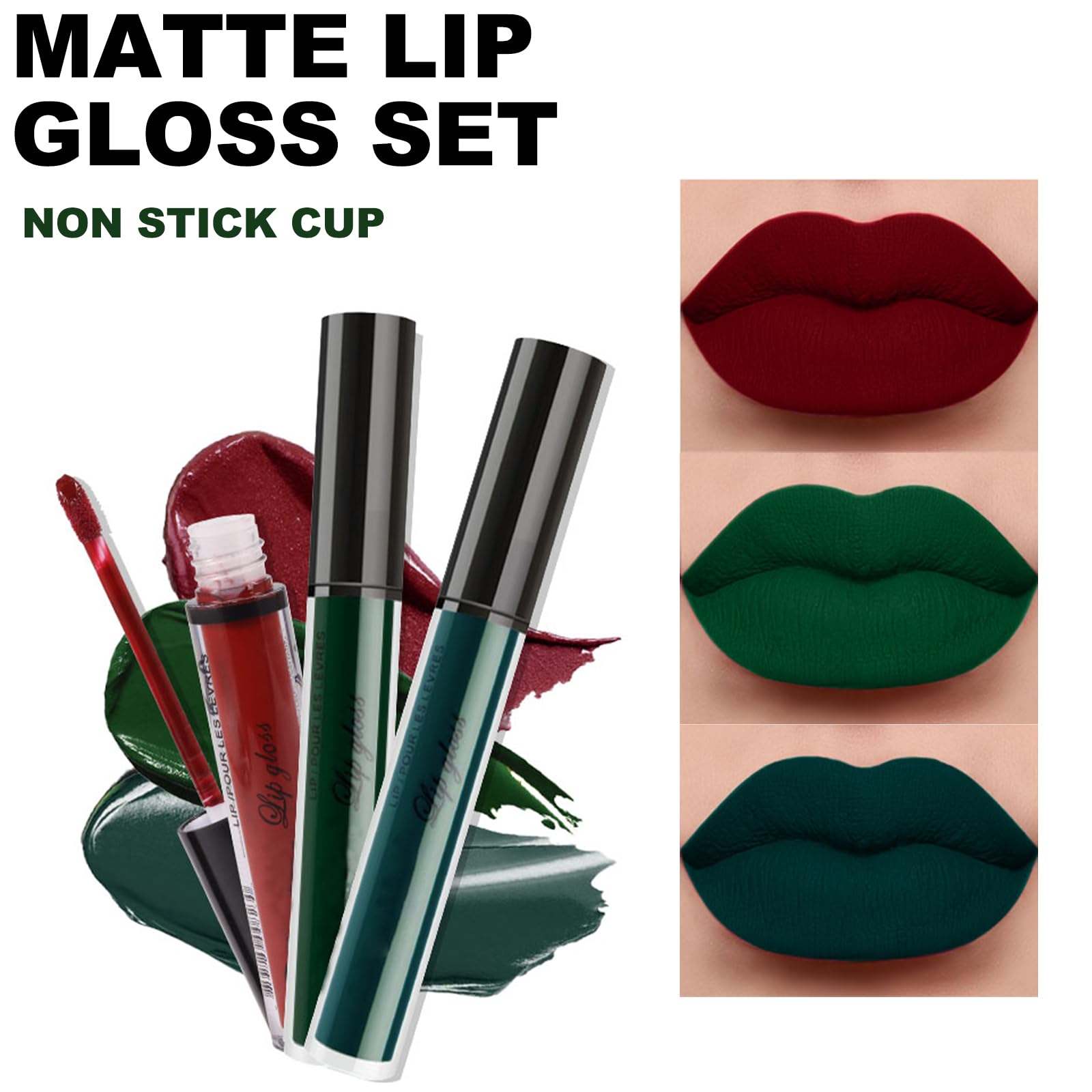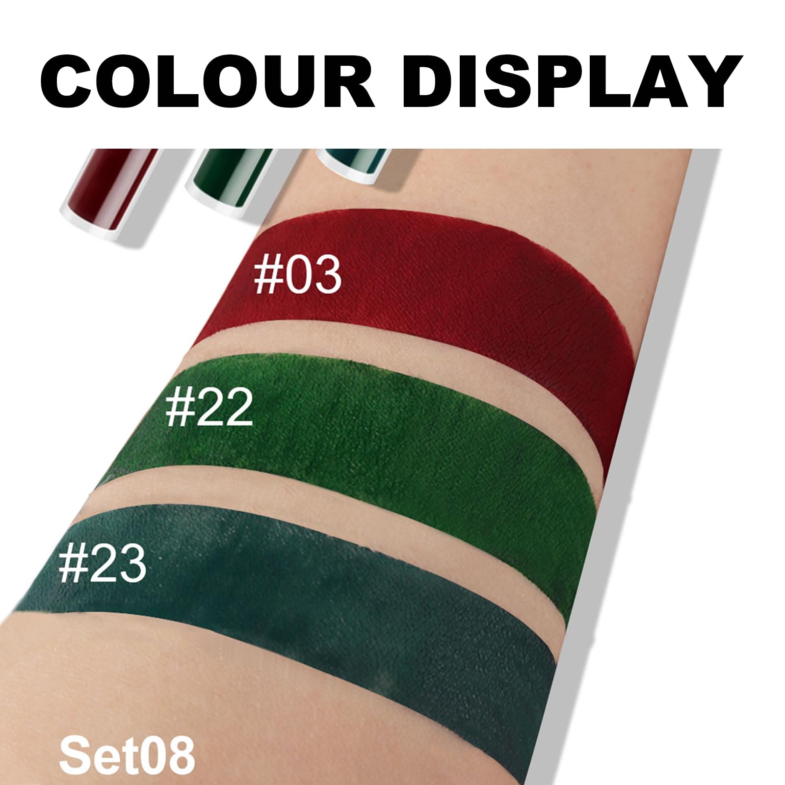 Erinde Matte Velvet Lipstick Set, Non-Stick Cup Lipstick, Green Liquid Lipstick Long Lasting, Dark Red Lip Gloss, Lip Makeup Kit, Waterproof, Smudge Proof