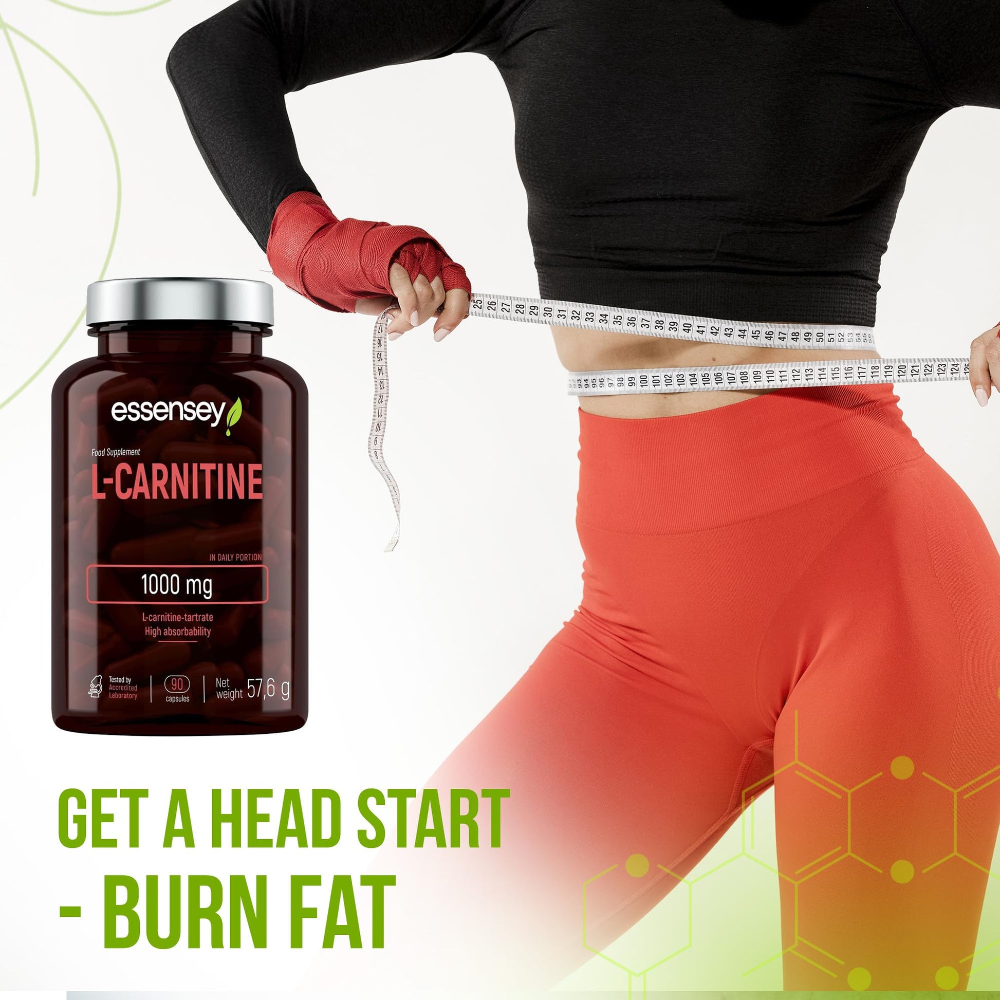 ESSENSEY Essensey L-Carnitine 1000mg - 90 Capsules | High Absorption Form | Ideal for Vegetarians High Strength L Carnitine Supplement