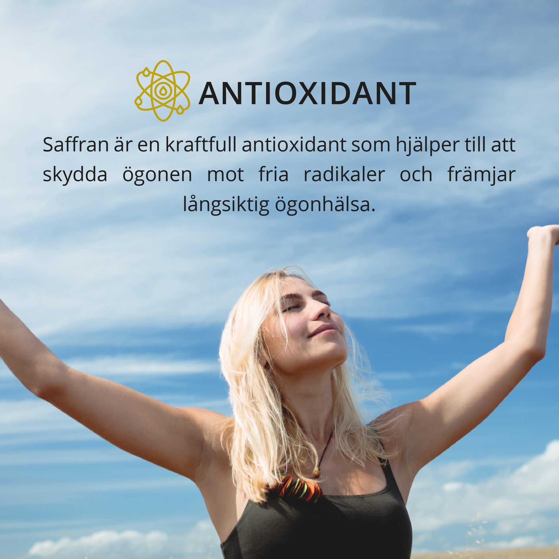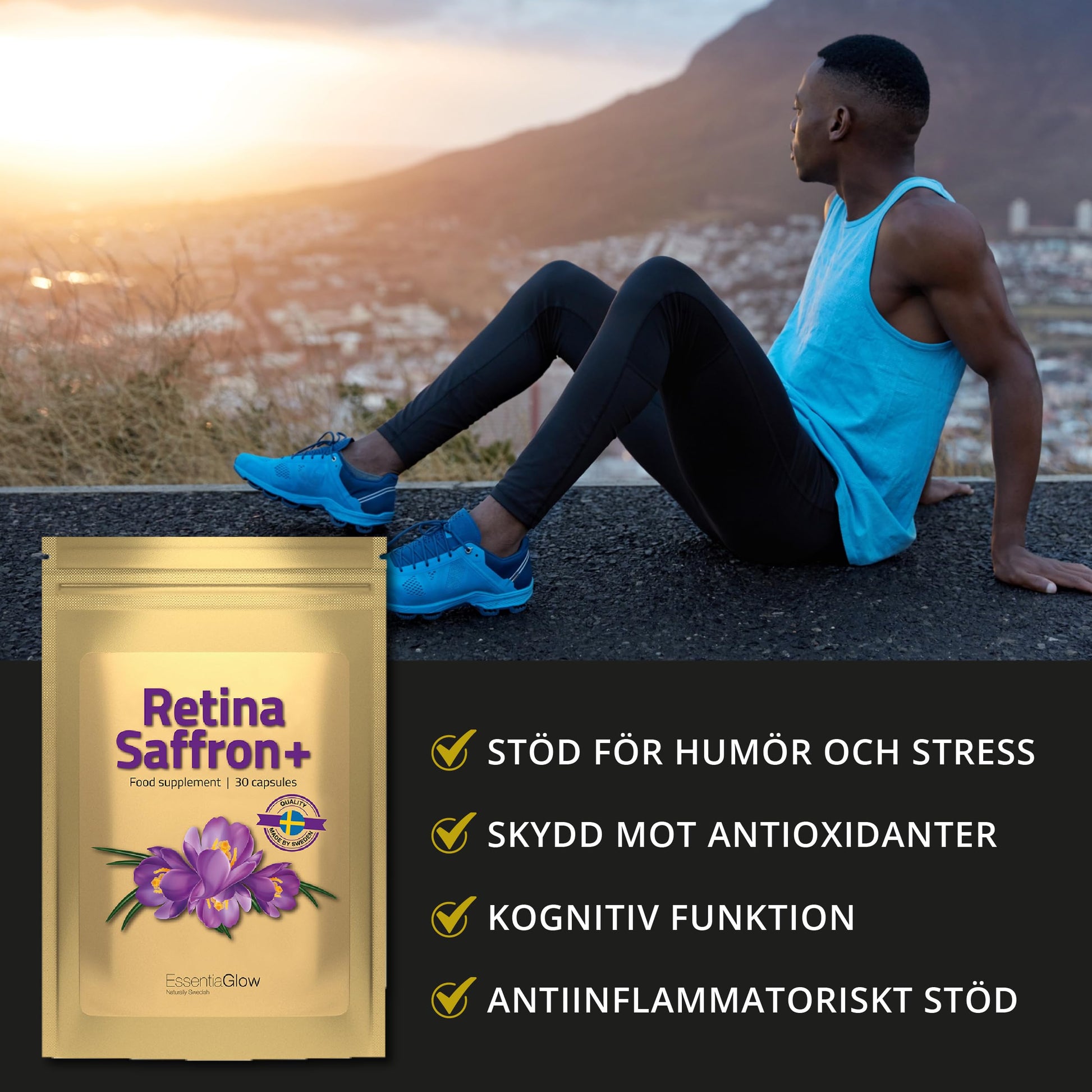 Vision health support Retina Plus Saffron: contains lutein and zeaxanthin. Lutein is not produced by the body, so with age, the body’s natural supply decreases. Saffron, lutein and zeaxanthin need to be brought through the diet or dietary supplements. Lutein is found in egg yolk and dark green vegetables. Zeaxanthin is found in the leaves of most green plants. Saffron, the most expensive of all spices. > Enhanced formula > 20mg Lutein > 5mg Meso-Zeaxanthin > Zinc > Zeaxanthin > Saffron extract > Copper > Vitamin A > Vitamin C > Vitamin E > Riboflavin ( in form of B2) > The Essential Eye nutrients > Swedish high-grade ingredients & quality GMP (Good Manufacturing Practices a system for ensuring that products are consistently produced and controlled according to quality standards)More Info