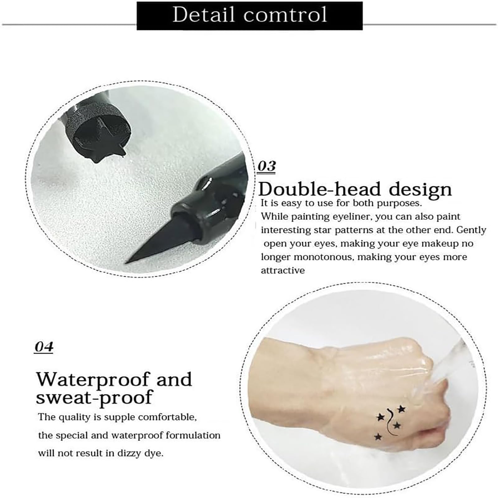 Eveloveu Waterproof Black Eyeliner Stamp Set - 5 Double-Headed Pens with Heart, Flower, Star, Butterfly & Triangle Seal Stamps for Long-Lasting, Smudge-Proof Tattoo Makeup