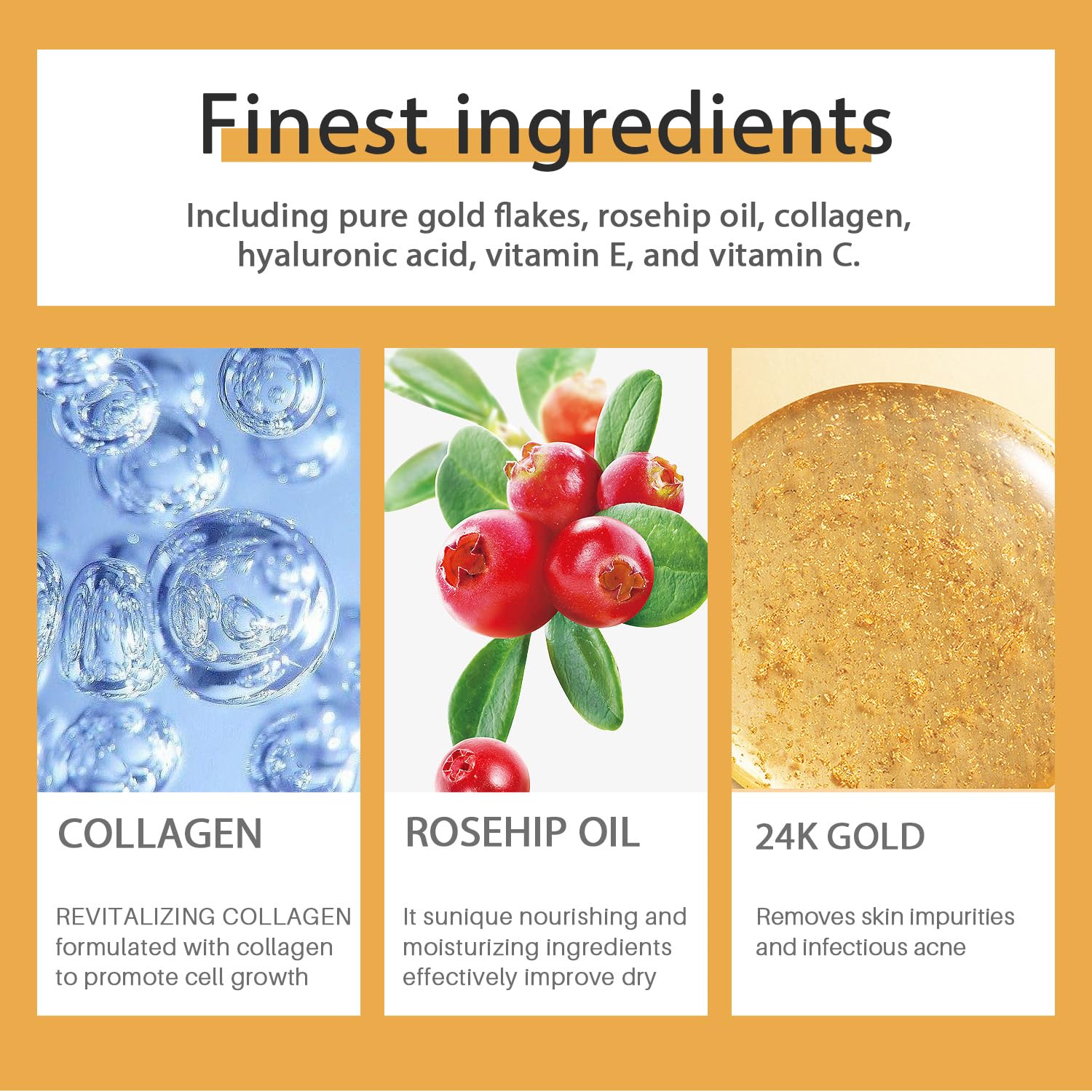 EverestBeauty 24K Gold Serum Pigmentation Uneven Skin Tone Dark Circles Collagen Boost