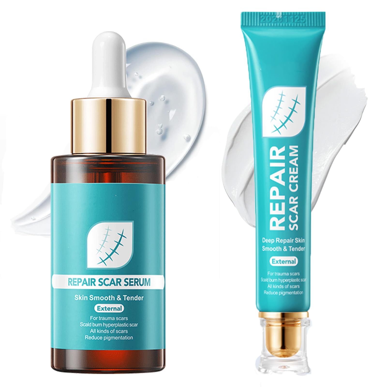 ewku Scar Removal Set with Repair Scar Cream & Serum, Stretch Mark Removal Cream for Old and New Marks, Acne Scar Treatment for Body, Trauma Scars, Scald, Hyperpigmentation & All Types of Scars