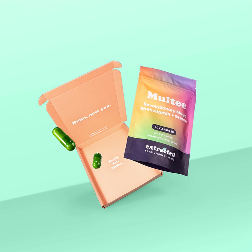 Multee by Extracted is a next-generation multivitamin designed to simplify your daily routine. With 40 carefully selected ingredients, including high-strength vitamins, minerals, amino acids, and marine phytoplankton, it delivers an advanced nutritional profile in just two capsules a day. The formula features a powerful greens blend alongside essential nutrients like B vitamins, vitamin K, iodine, and zinc - all chosen for their high bioavailability. Free from artificial fillers and made in the UK to the highest GMP standards, Multee is a convenient, all-in-one solution for those seeking a premium-quality supplement without the hassle of multiple products.More Info