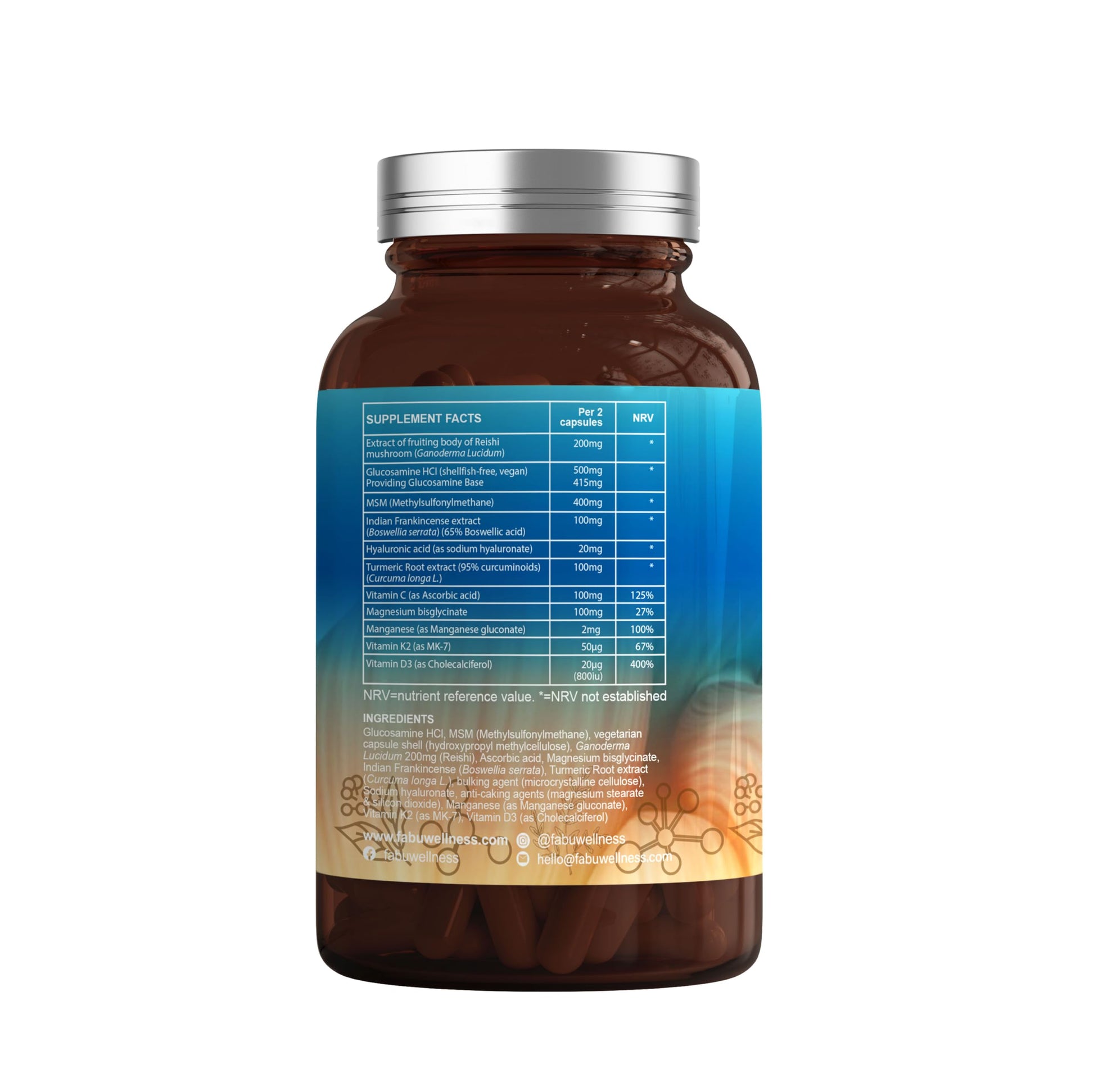 fabÜ JOINT-BONE-MUSCLE - Reishi Mushroom Supplement with Glucosamine, MSM, Boswellia, Turmeric and Vitamins and Minerals (60 Capsules)