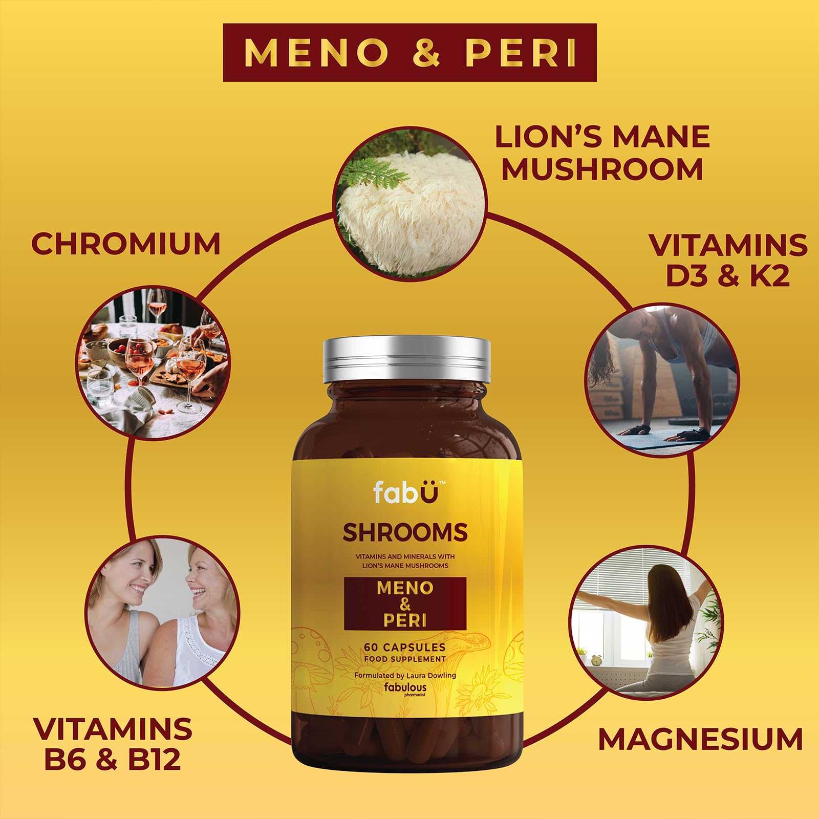 - Expertly Formulated: Crafted by Laura Dowling, Fabulous Pharmacist, fabÜ SHROOMS MENO & PERI is your trusted functional mushroom supplement to help you through perimenopause and menopause.