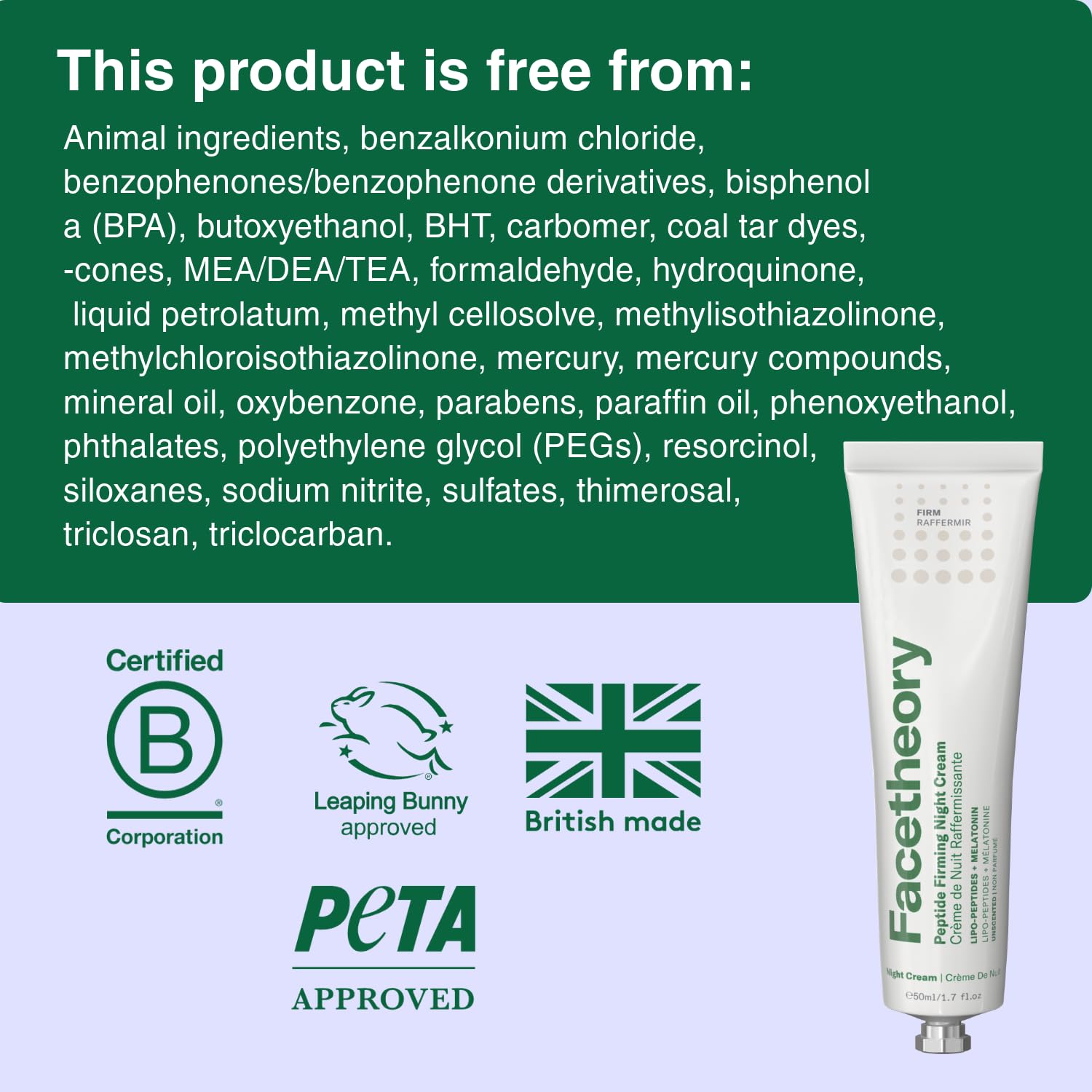 At facetheory, we blend the best of nature and science to transform skin for the better. Our vegan and cruelty-free night face cream for women and men contains no parabens, silicones, PEGs, SLS, SLES, mineral oils, or animal ingredients.