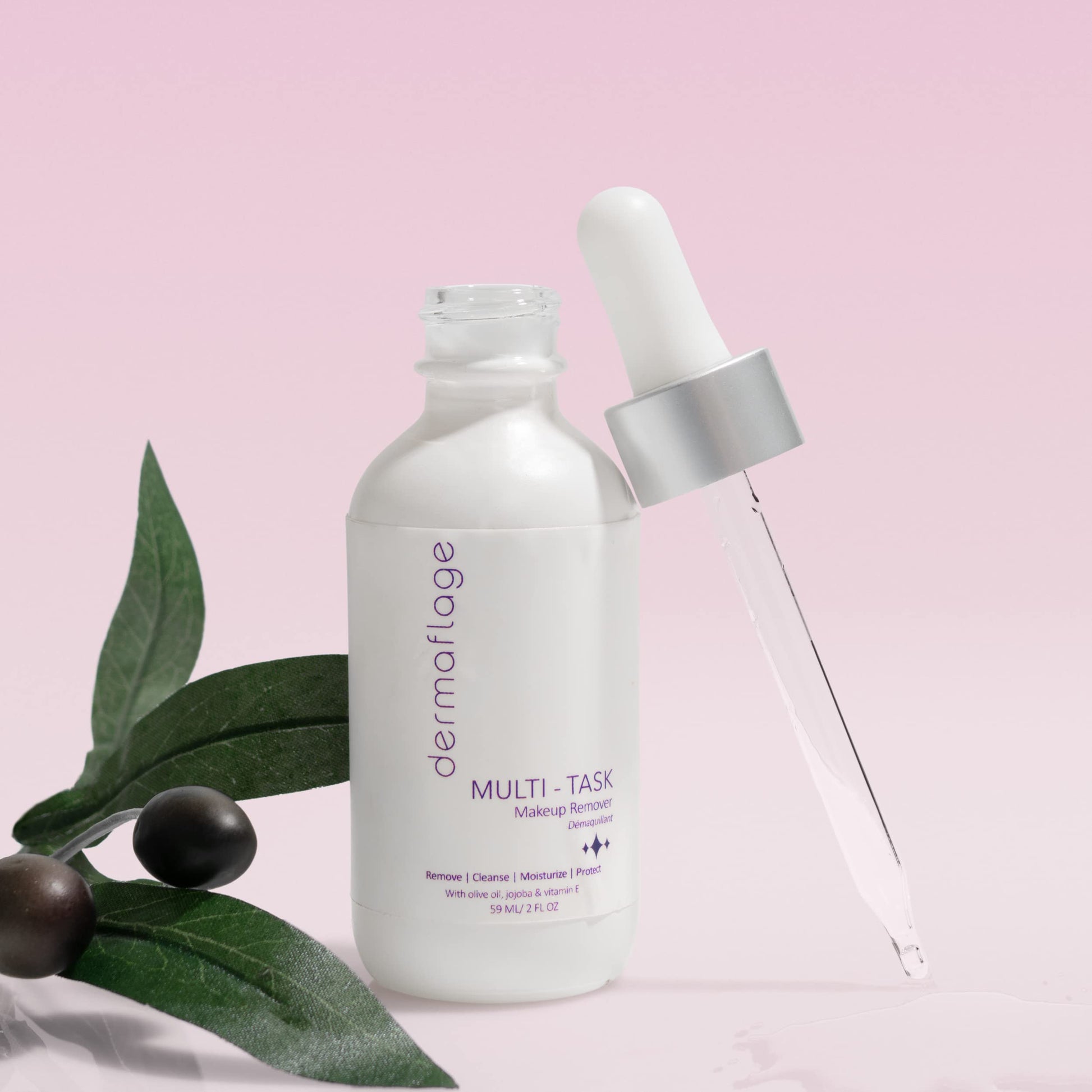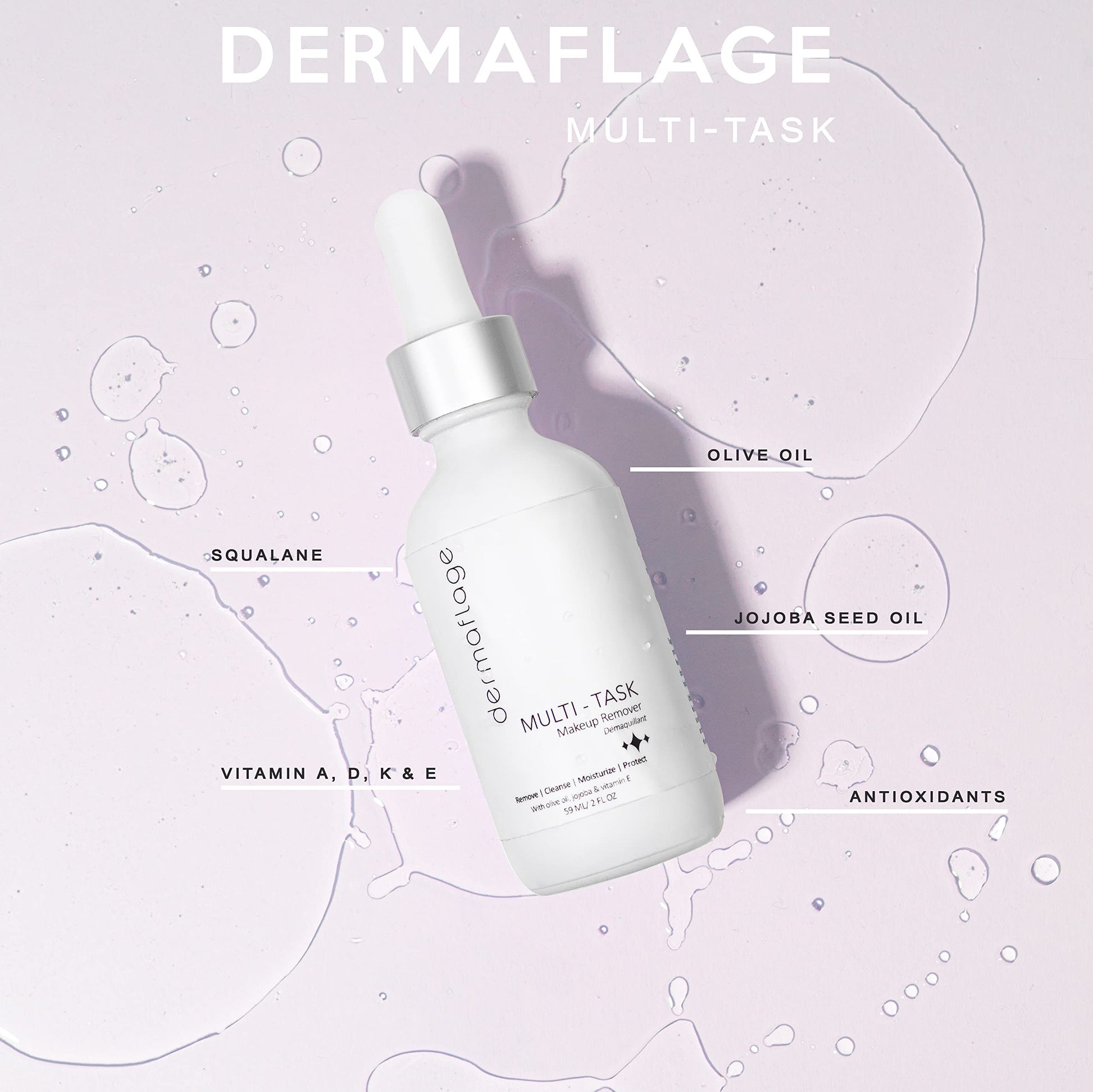 Facial Cleansing Oil Makeup Remover is a 1-step cleansing oil for sensitive skin, makeup remover, anti-aging serum & moisturizer. Formulated with olive oil, jojoba & vitamin E. Cleanse, hydrate, fight breakouts & shield your skin with powerful anti-oxidants. Multi-tasker by Dermaflage.More Info