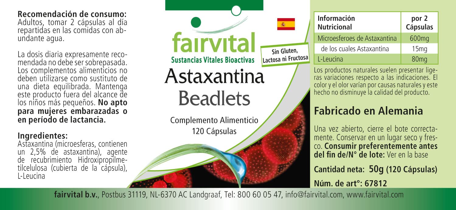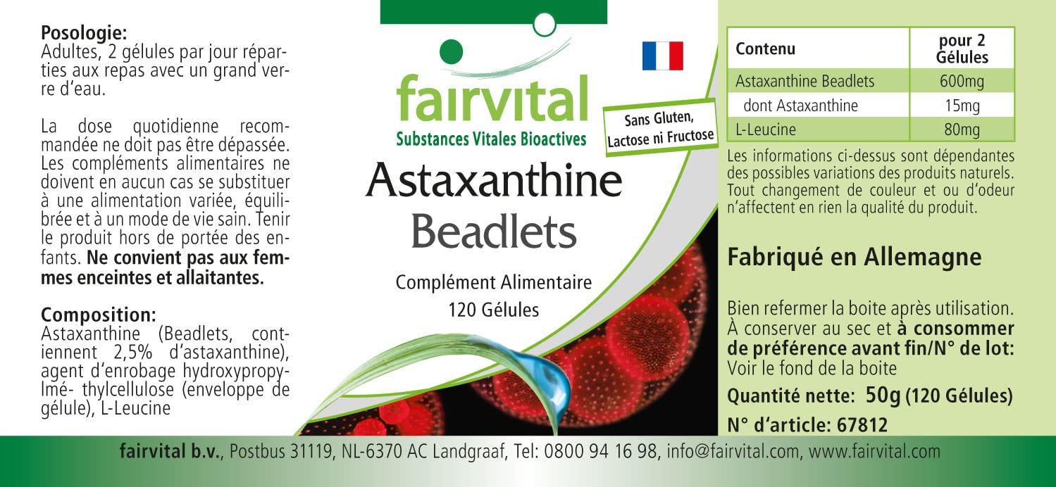 Fairvital | Astaxanthin 15mg per Day - HIGH Dosage - 120 Capsules - microencapsulated in AstaPure® beadlets