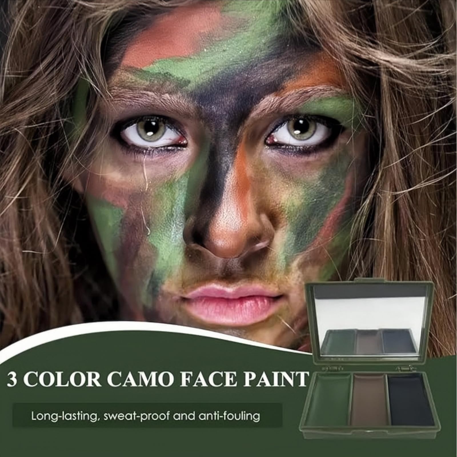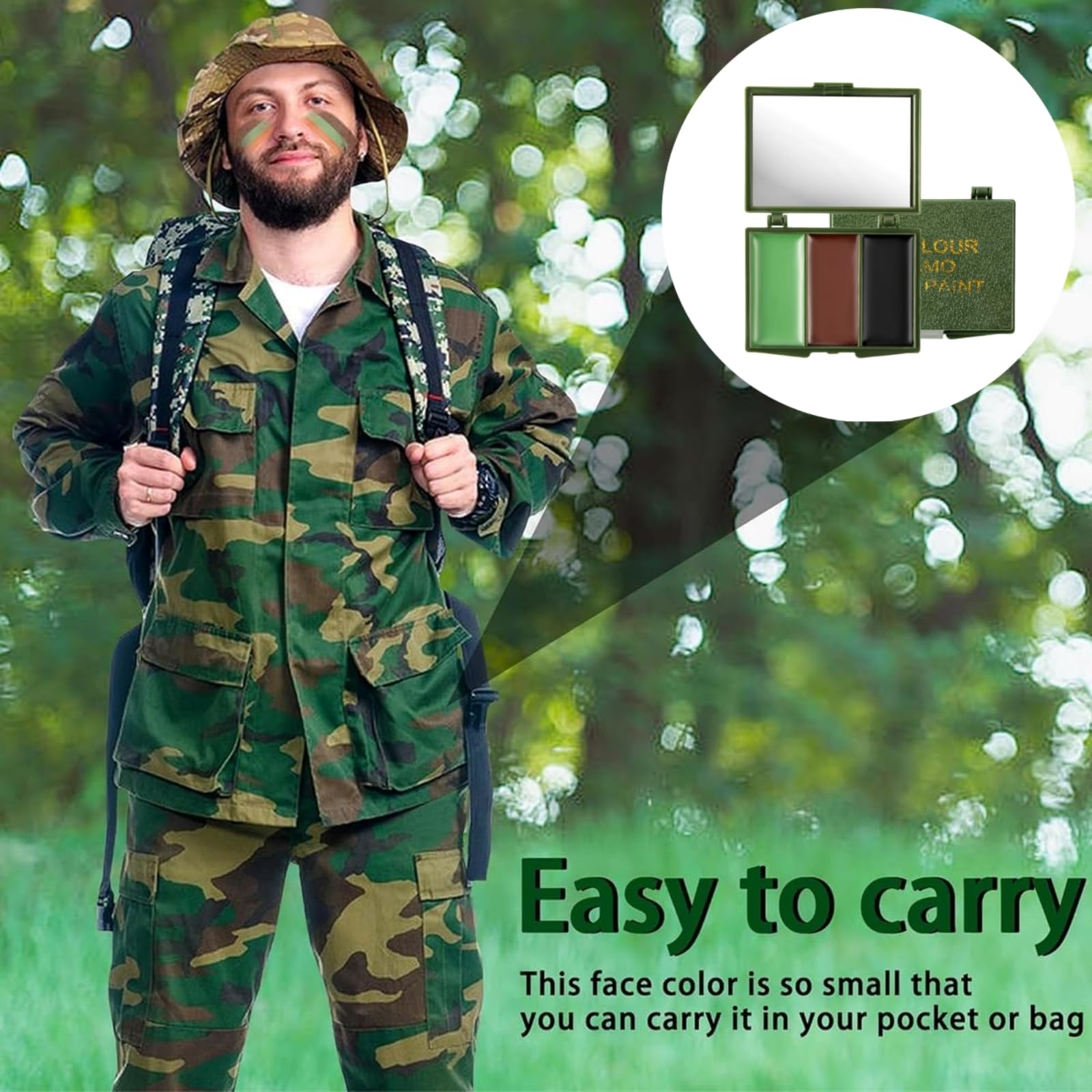 Fankayi 3 Color Camo Face Paint,Army Face Paint,Long Lasting Paint,Face Paint Palette,Waterproof Face Paint,Camouflage Makeup for Face,Suitable for Military Training & Outdoor Survival (Black/Brown/Green)