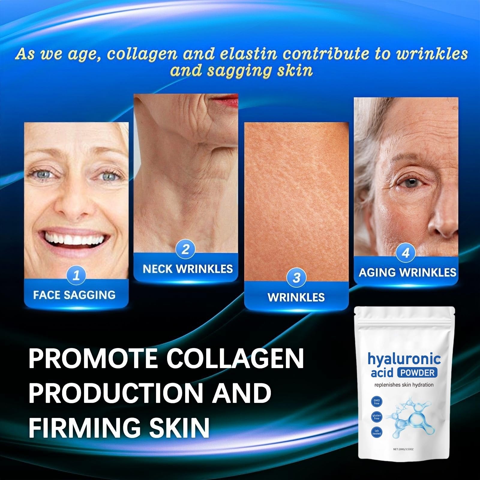 2.Long-term use of this hyaluronic powder can improve skin texture and reduce fine lines.