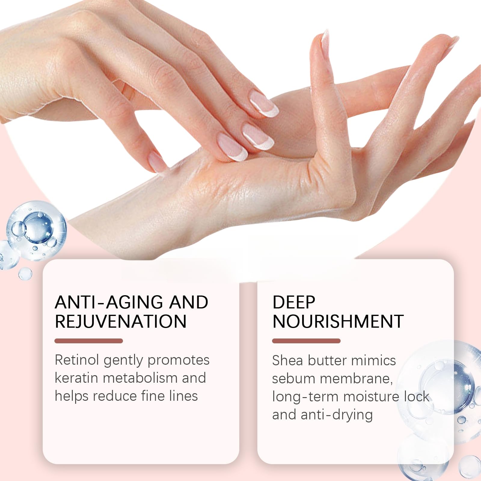 3.Focus on massaging the knuckles and other areas prone to dryness, and wait for the retinol hand cream anti aging to be absorbed.