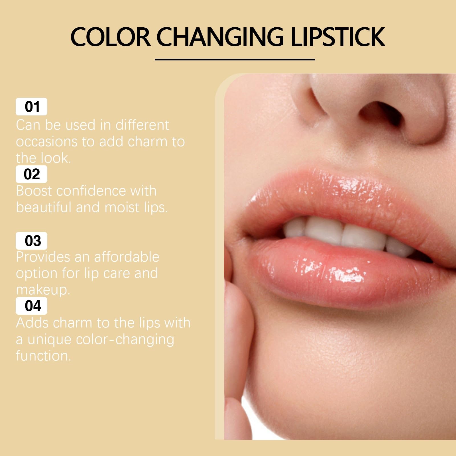 Features:1.Our colour changing lipstick can moisturize and felieve dry lip.