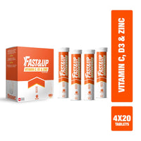 Fast&Up Vitamin C, Vitamin D & Zinc - 80 Effervescent Tablets (4 X 20) - Saver Multipack - Complete Immunity Booster - One Daily - Orange Flavour