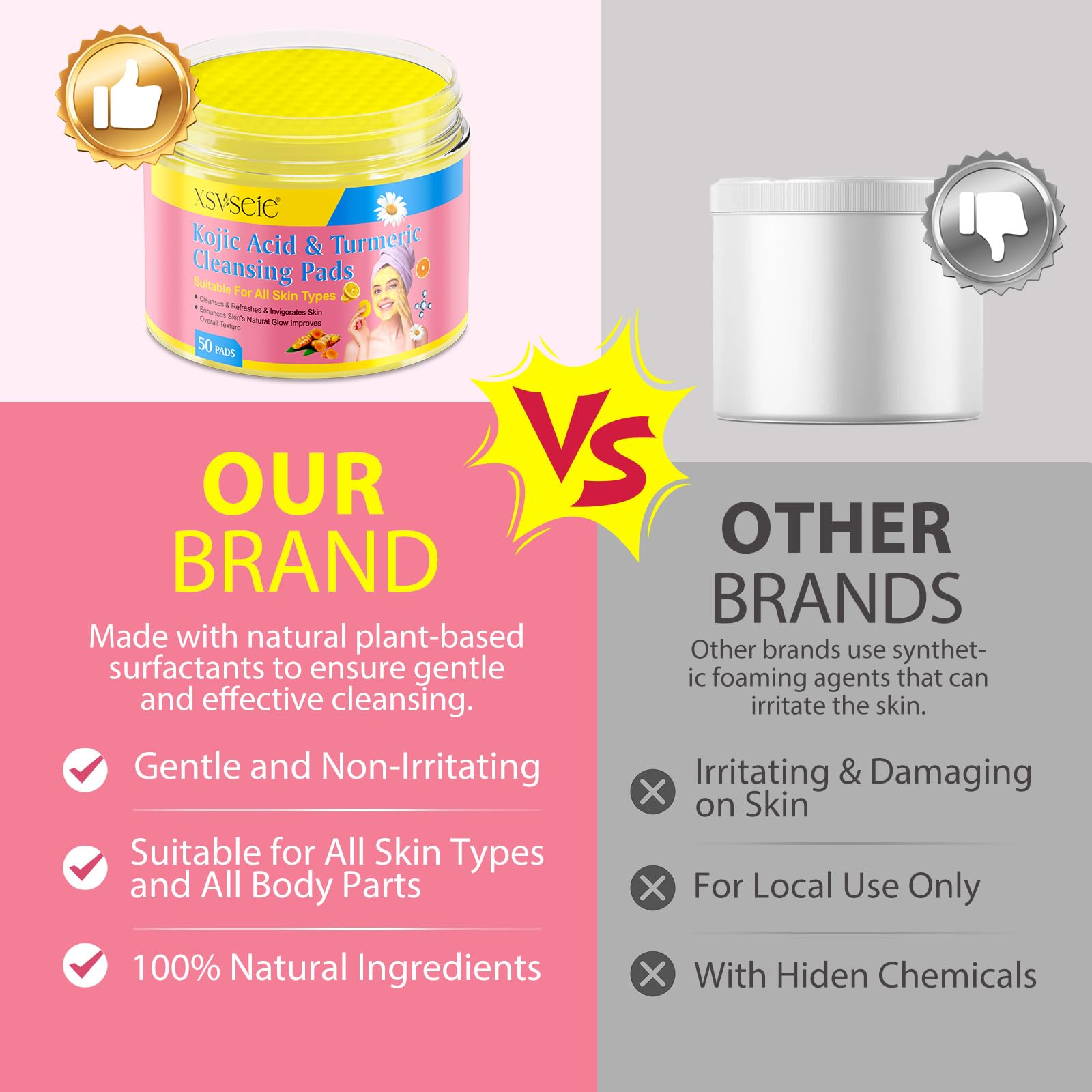 Product Name:Kojic Acid & Turmeric Cleansing Pads Packaging includes:50pcs cleansing pads for easy use and travelkojic acid & turmeric cleansing pads made with natural ingredients for a gentle yet effective cleansing. They offer a firming and toning effect that improves your skin's overall texture and are safe and effective for all skin types. Use them on your whole body to address a variety of skin issues