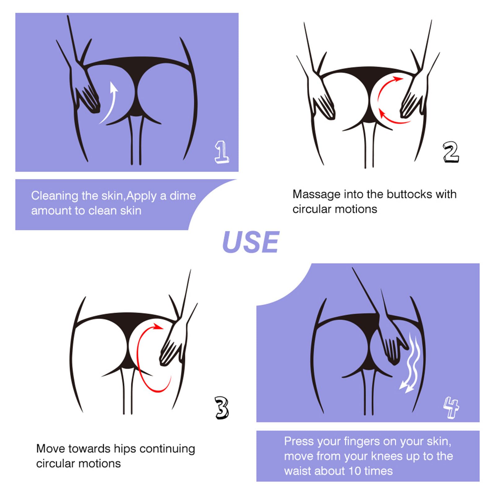 Apply Daily: Massage crepey skin cream onto clean, dry buttocks and thighs using upward circular motions.
