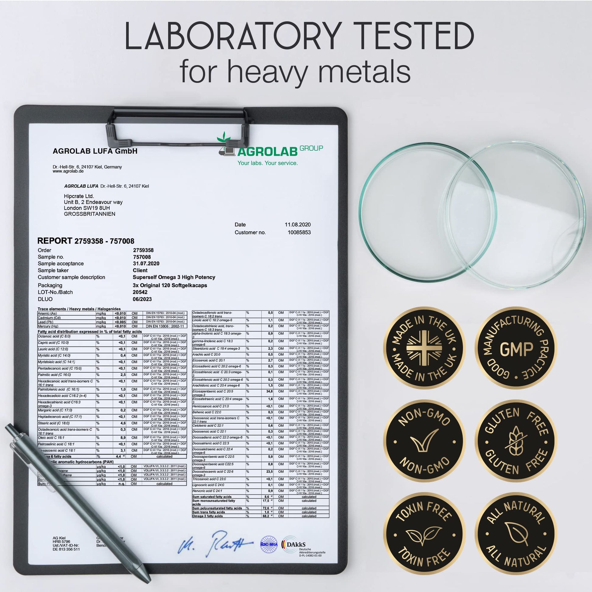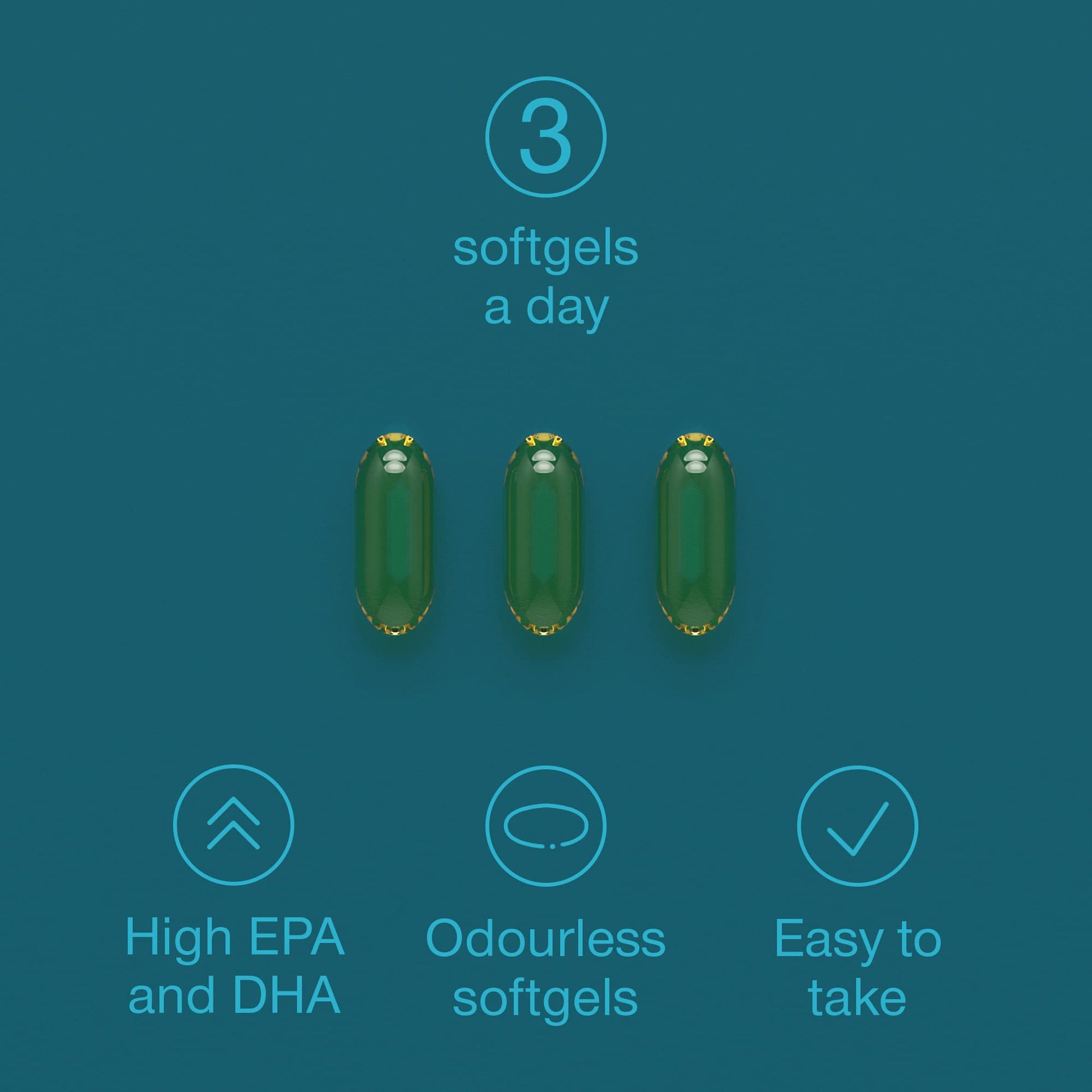 Essential, natural, simple – but are you getting enough?Your body can’t produce omega 3 fatty acids, but it uses them for critical tasks every day. Natural sources, such as tuna and mackerel can also come with heavy metal contamination. Sustainably sourced from small, deep sea fish, SuperSelf fish oils are filtered to remove any toxins, and regularly tested for quality. Designed by experts, these omega 3 capsules contain high doses of the most potent omega 3 fatty acids: 660mg of docosahexaenoic acid (DHA) and 990mg of eicosapentaenoic acid (EPA). In total, a daily serving contains 3000mg of fish oil and 1650mg of omega 3.