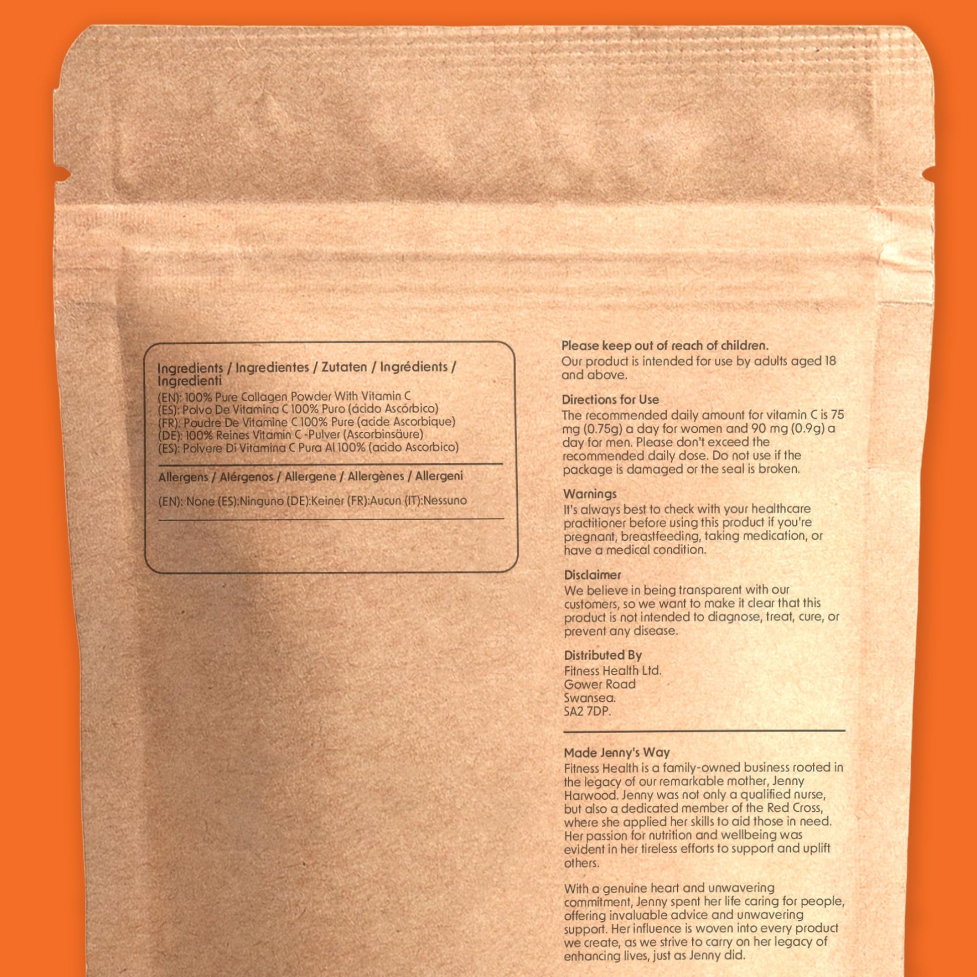 Collagen is essential for our skin health and several other aspects of health throughout our body. On its own, it's great for hydrating the skin, helping it to look plump and healthy, it can improve gut health, and can strengthen hair and nails. One vitamin that is needed for the formation of collagen is vitamin C. It also happens to be important for our skin health. Vitamin C deficiency and collagen deficiency can both have a serious effect on our health. Sun exposure, genetics, and a poor diet are all reasons why our collagen production and vitamin C production can start to decline. These are also the typical reasons you would have a deficiency. The good thing is, collagen and vitamin C work together in the body to provide great skin health benefits. Read on to learn more about how these two things are connected within the body, and what they can do for your health.INGREDIENTS:Bovine collagen, Hydrolysed ascorbic acid, with vitamin C. Our collagen powder is 100% pure and is free from harmful chemicals, preservatives, and artificial flavour.SUGGESTED USE: Mix 5 grams of powder with water, smoothies or shakes. Do not exceed.CAUTION: This product is a food supplement and therefore should not be used as a substitute for a varied diet and a healthy lifestyle. Store in a cool dry place, out of the reach of young children.More Info