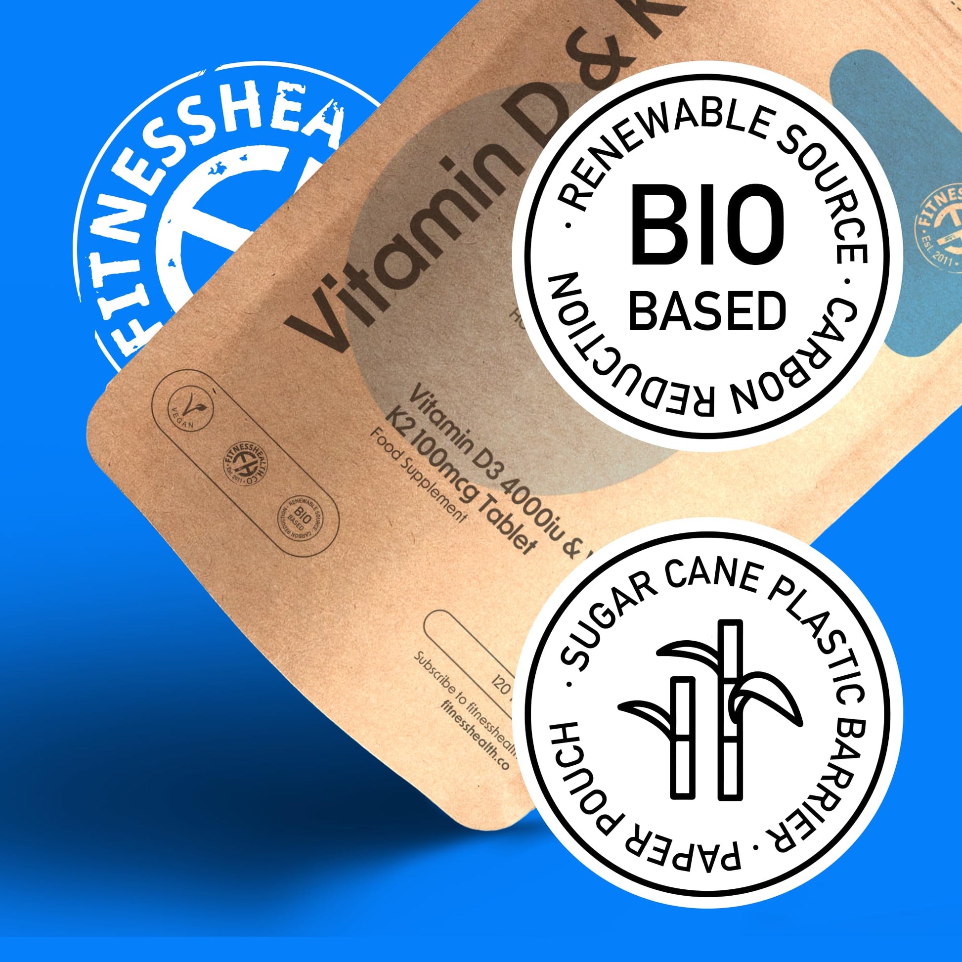 Take one tablet of Fitness Health Vitamin D3 K2 (MK7) Tablets per day with water. Do not exceed the stated dose. Store in a cool dry place, out of the reach of young children. These vitamin c tablets are suitable for vegans and vegetarians. This product is a food supplement and therefore should not be used as a substitute for a varied diet and a healthy lifestyle. We are reducing our amount of plastic usage and using products, which are better for the planet. We are using a Bag that is made with an additive and polymer made from cornstarch allowing the same strong and weatherproof performance as plastic but without the negative impact.