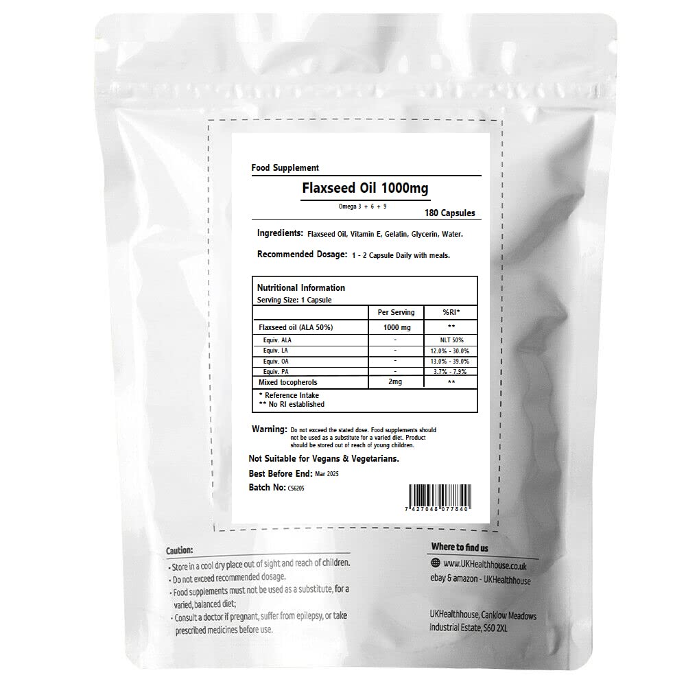 Flaxseed Oil Softgel 1000mg x 180 Capsules Strong Formula Omega 3+6+9 Linseed Oil
