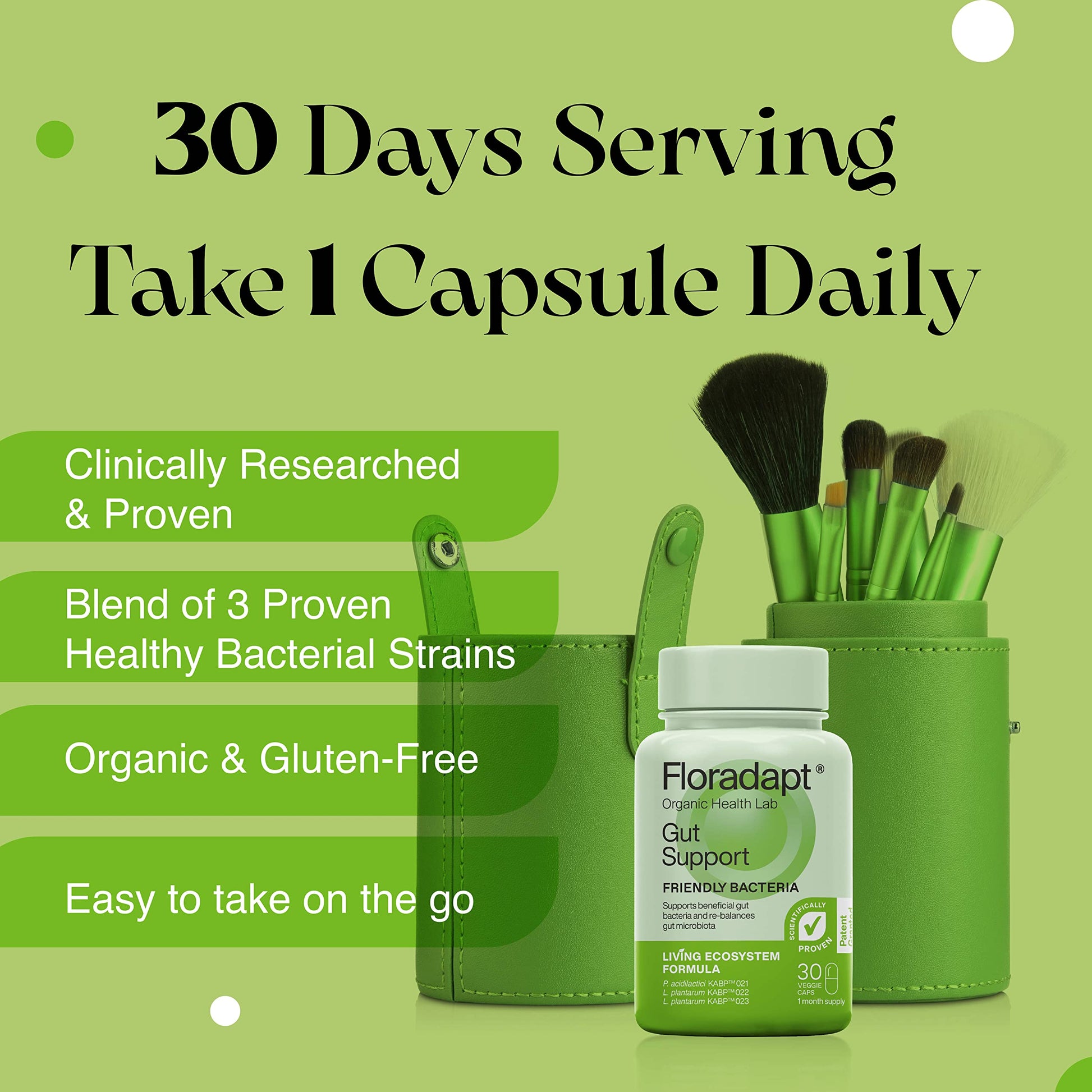 Floradapt Gut Support Probiotics for Bloating Relief, Improved Digestion & IBS Relief | Vegan & Certified Gut Health Supplement | Recommended by The WGO | (30 Day Supply)
