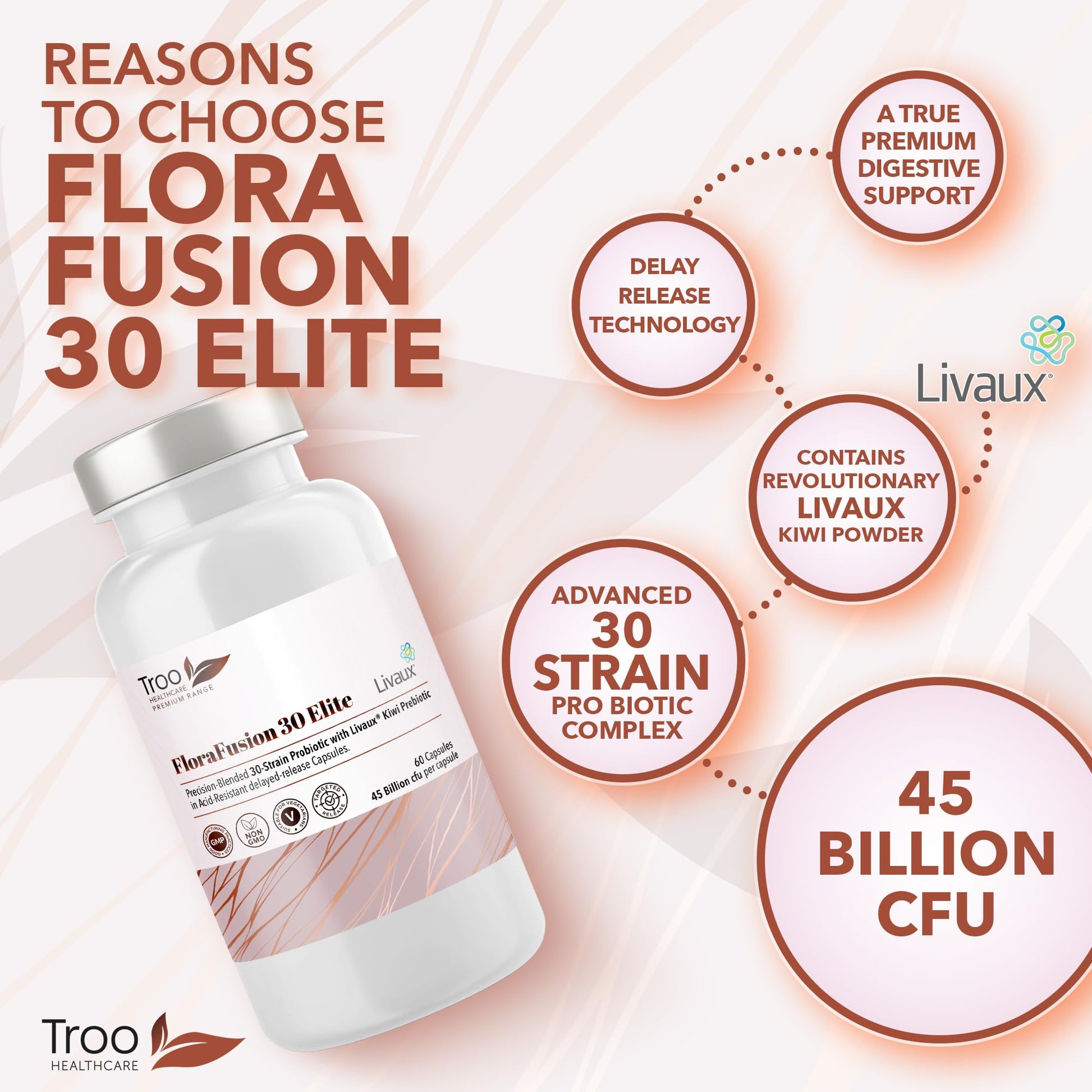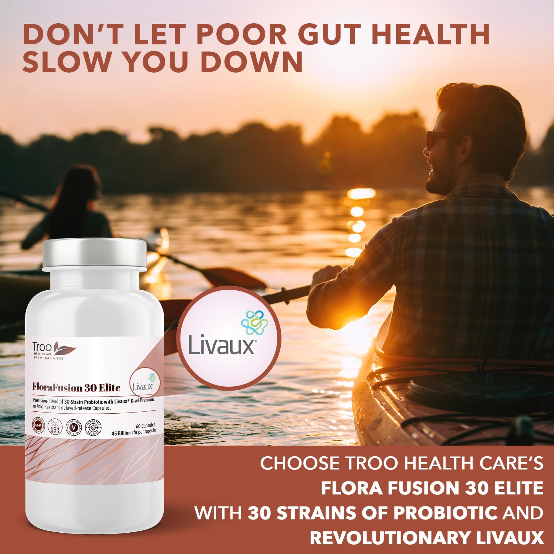 FloraFusion Elite Probiotic Complex - 30 Strains, 45 Billion CFU with Livaux Prebiotic - 60 CapsulesElevate your wellness journey with the FloraFusion Elite Probiotic Complex. Expertly crafted to support digestive health and overall well-being, this supplement stands out in the realm of gut health solutions.