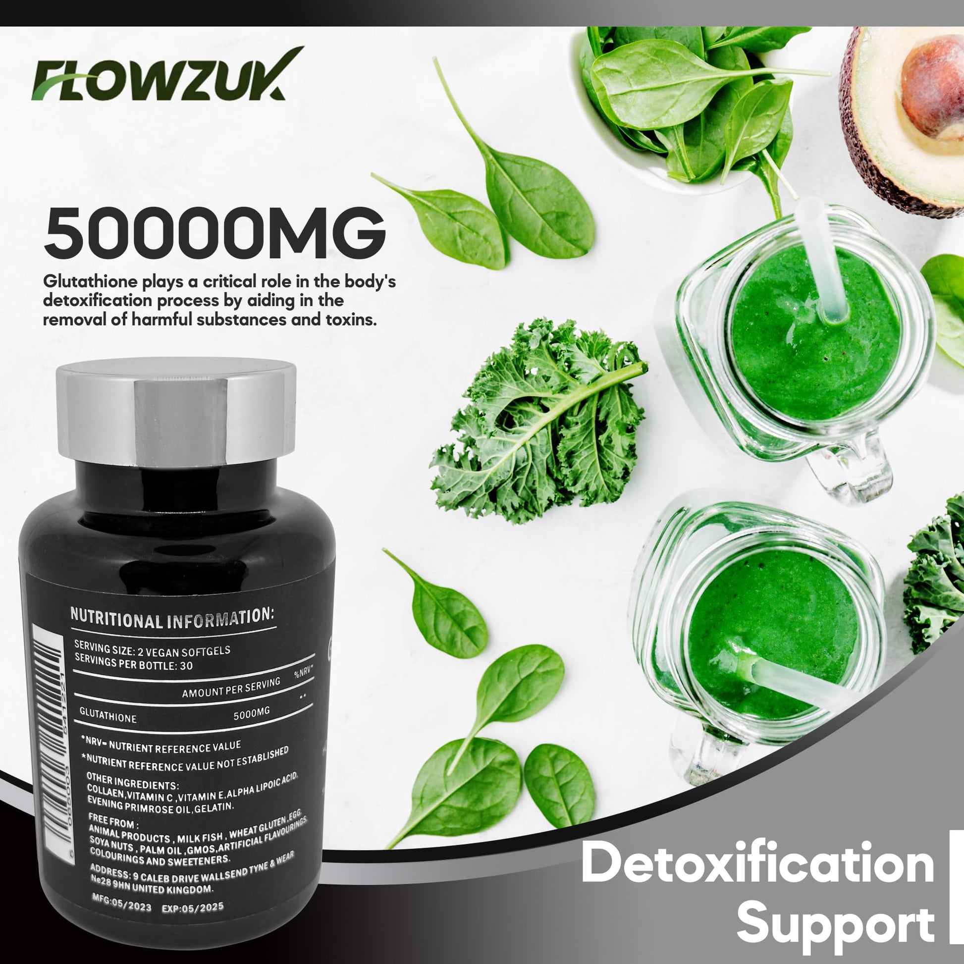 FLOWZUK Glutathione Supplements Ultra High Strength 60 Easy to Swallow softgels with Added Vitamin C and Collagen