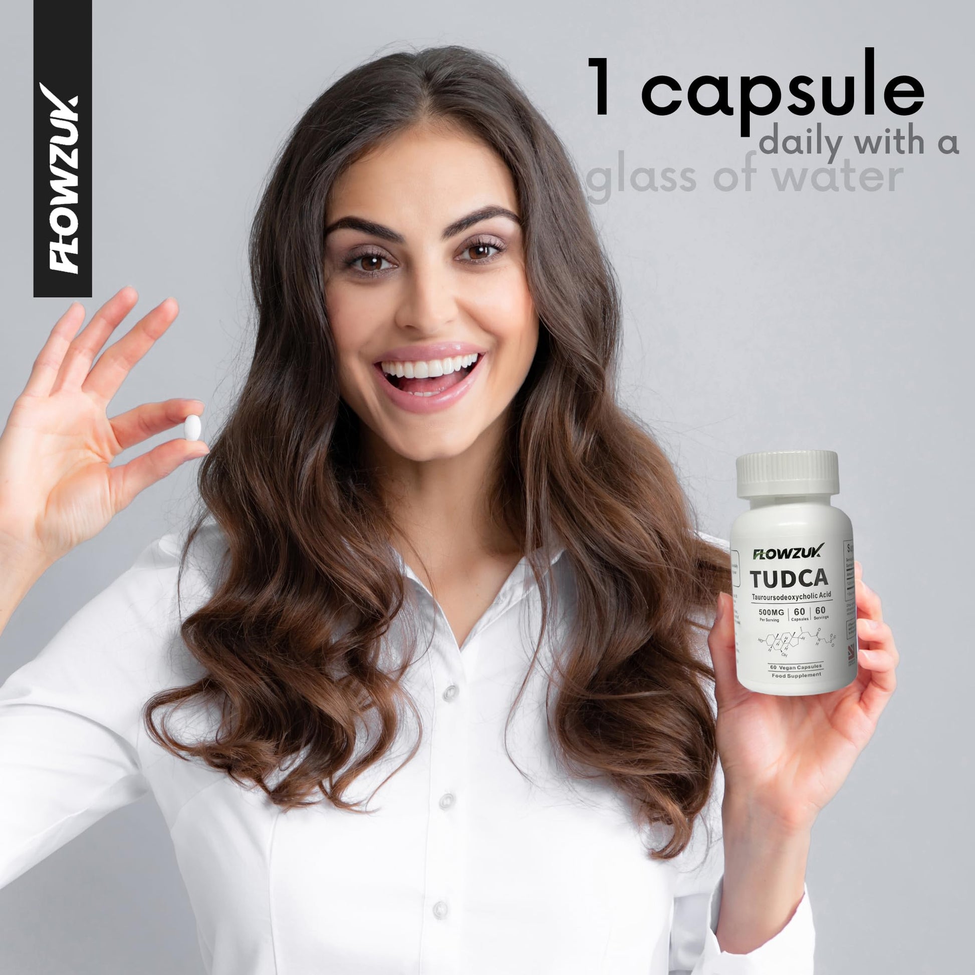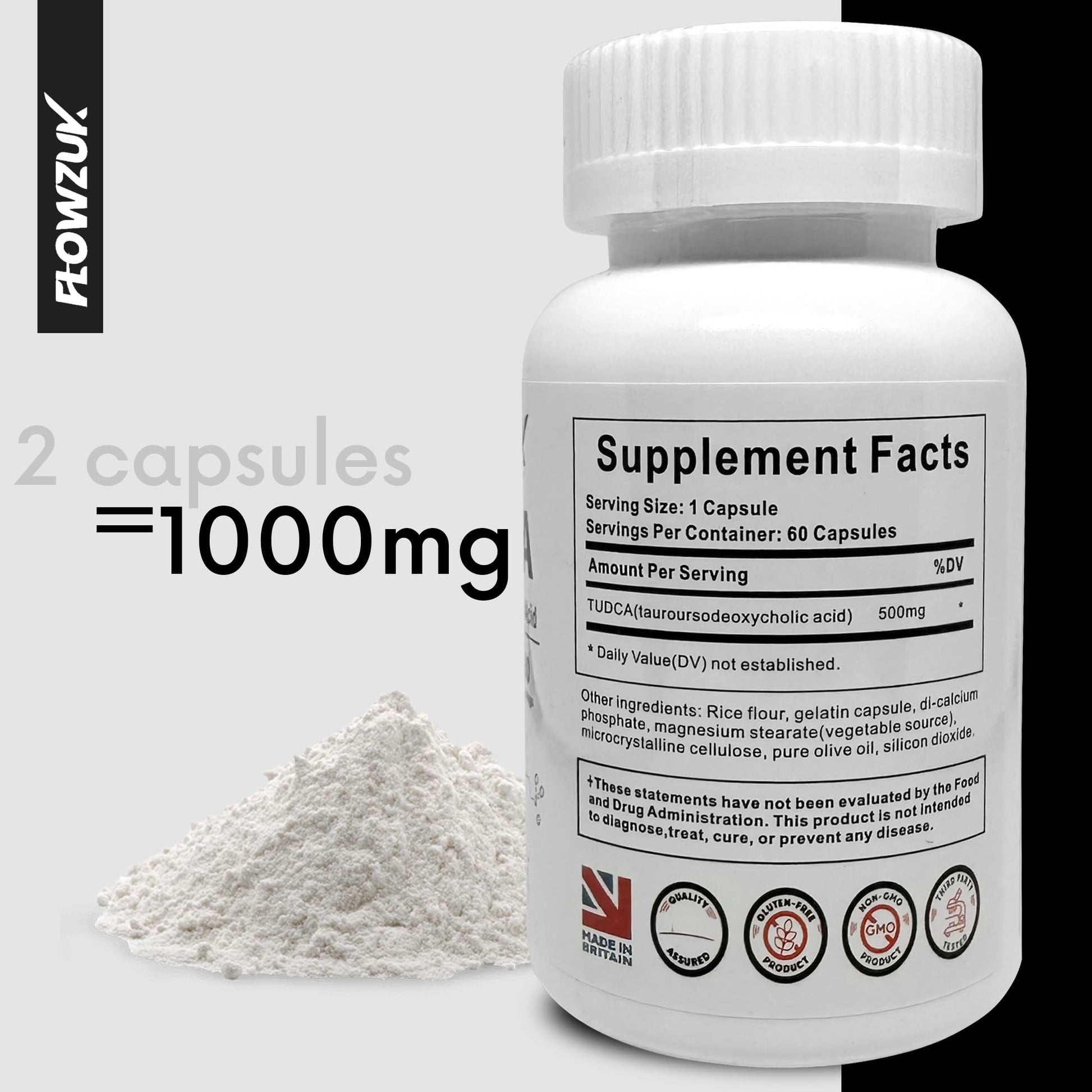FLOWZUK TUDCA High Strength 60 Capsules - Tauroursodeoxycholic Acid, Liver Support Supplement, Enhances Proper Bile Production, Boosts Digestion and Immune System Support Flowzuk