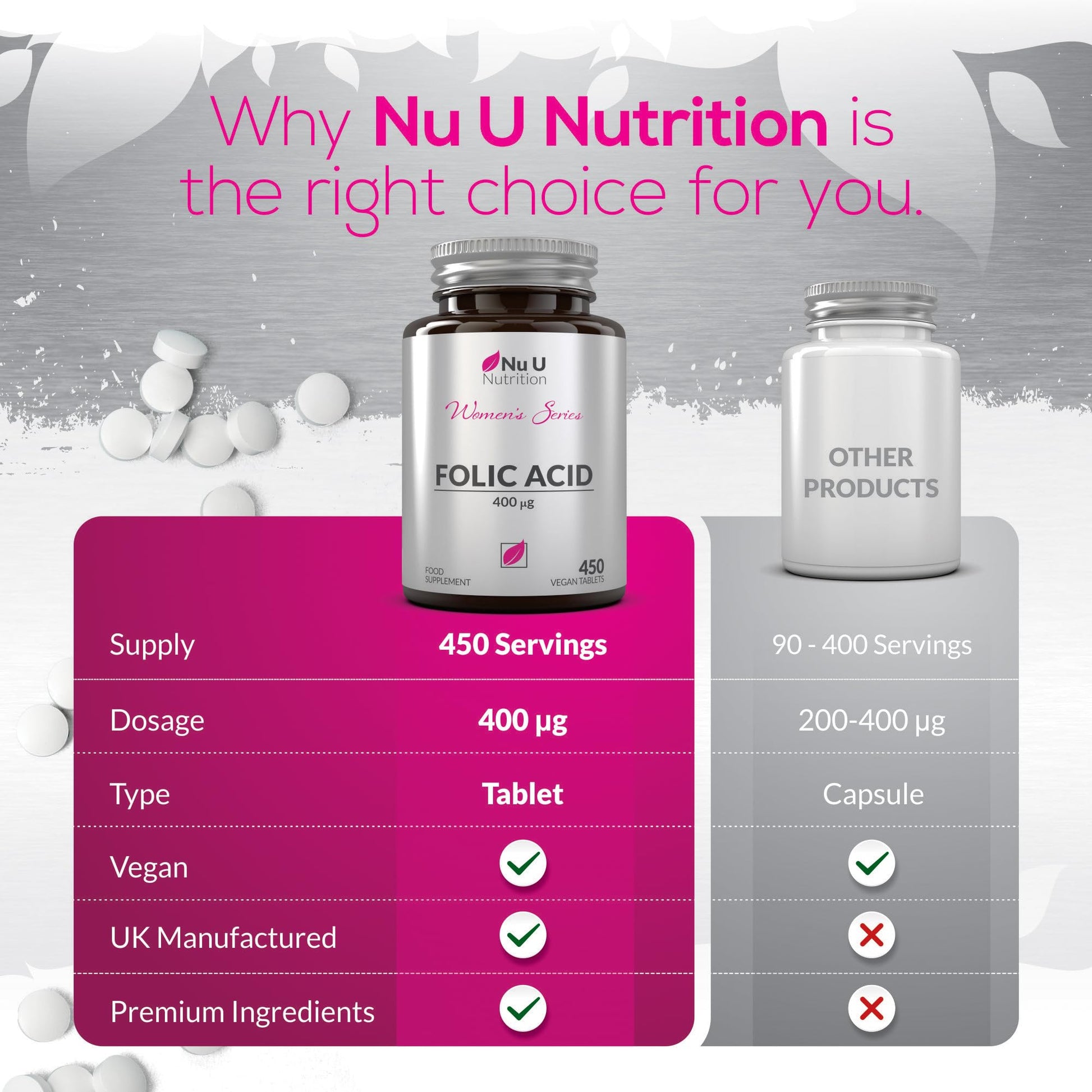 - ✔ 15 MONTH SUPPLY - Enjoy incredible value for money with our Folic Acid tablets which provide 450 tablets for a 15 month supply! We provide the most tablets per bottle when compared to other Folic acid supplements, giving you on average 12.5% more tablets. With other Folic Acid supplements only lasting 13 months, why pay more for less? Our tablets should last you for your entire prenatal and pregnancy journey, so you won’t have to worry about running out of this essential vitamin.