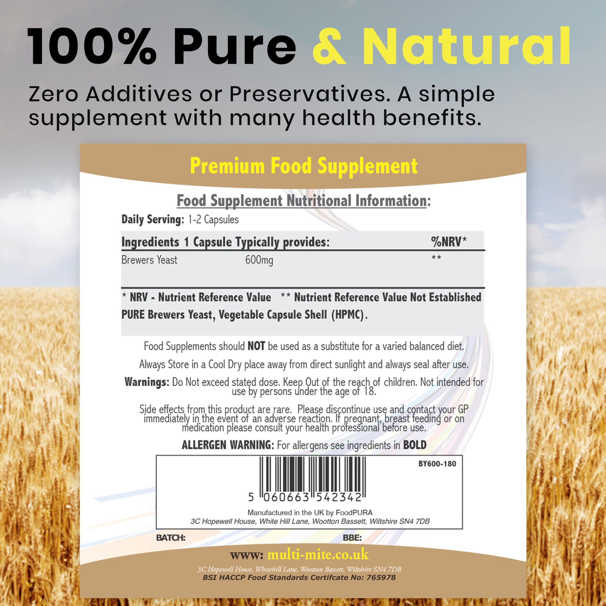 FoodPURA 90 x 600mg Brewers Yeast Capsules 100% Pure & Natural Not Debittered HACCP Certified Manufactured in The UK (90)