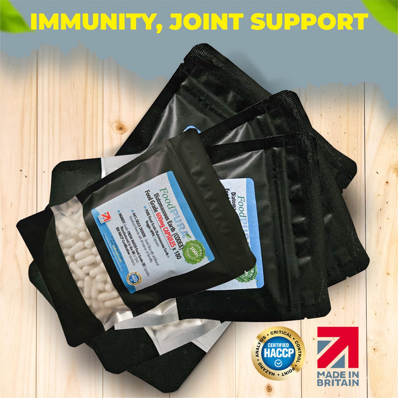 FoodPURA Food Grade Diatomaceous Earth Capsules (Codex) Pure White 94% Silica Fresh Water Sourced 600mg (180)