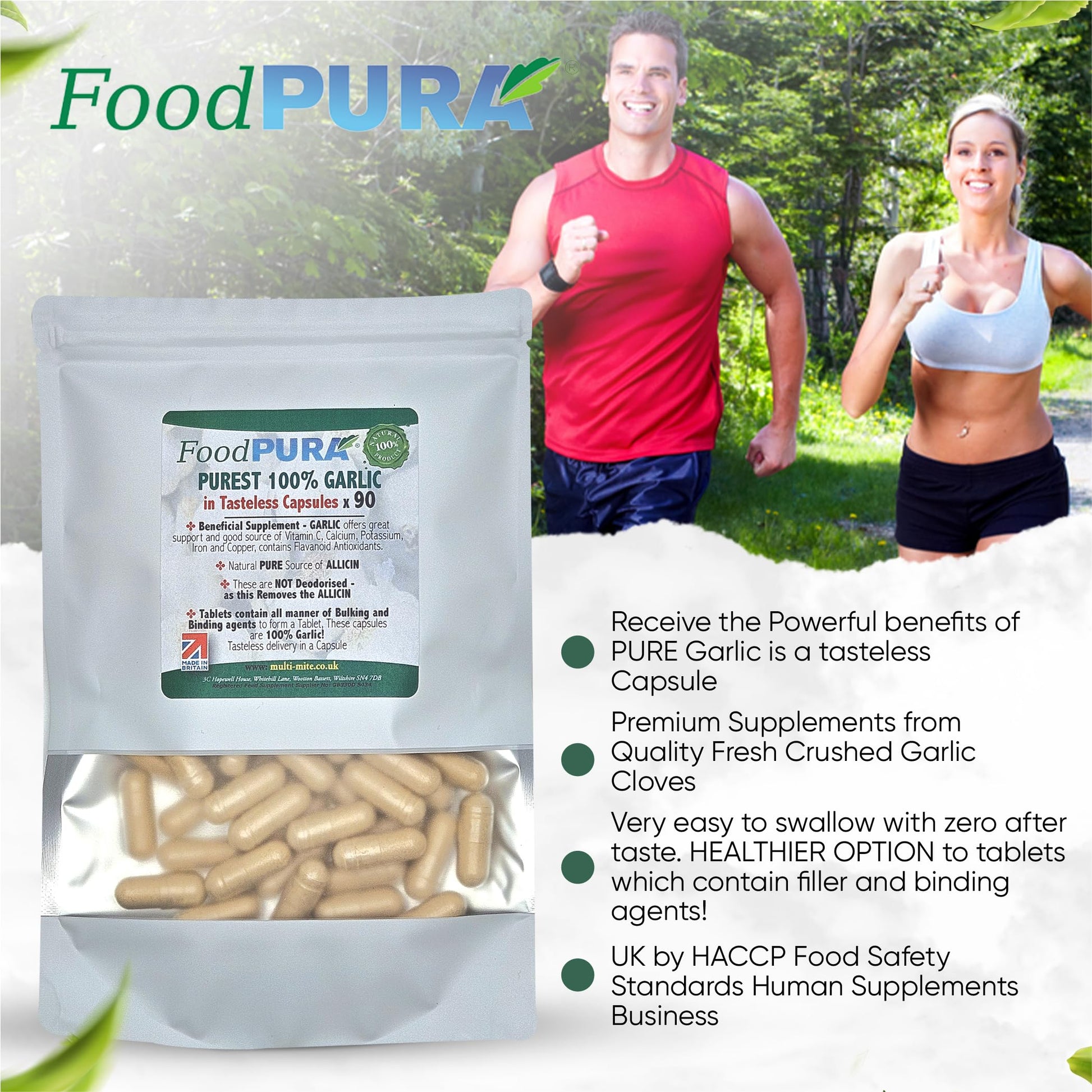 FoodPURA Pure Garlic Capsules Recommended Daily Strength 1000mg HACCP Certified, Manufactured in The UK by FoodPURA 1 Pack of 90 Capsules