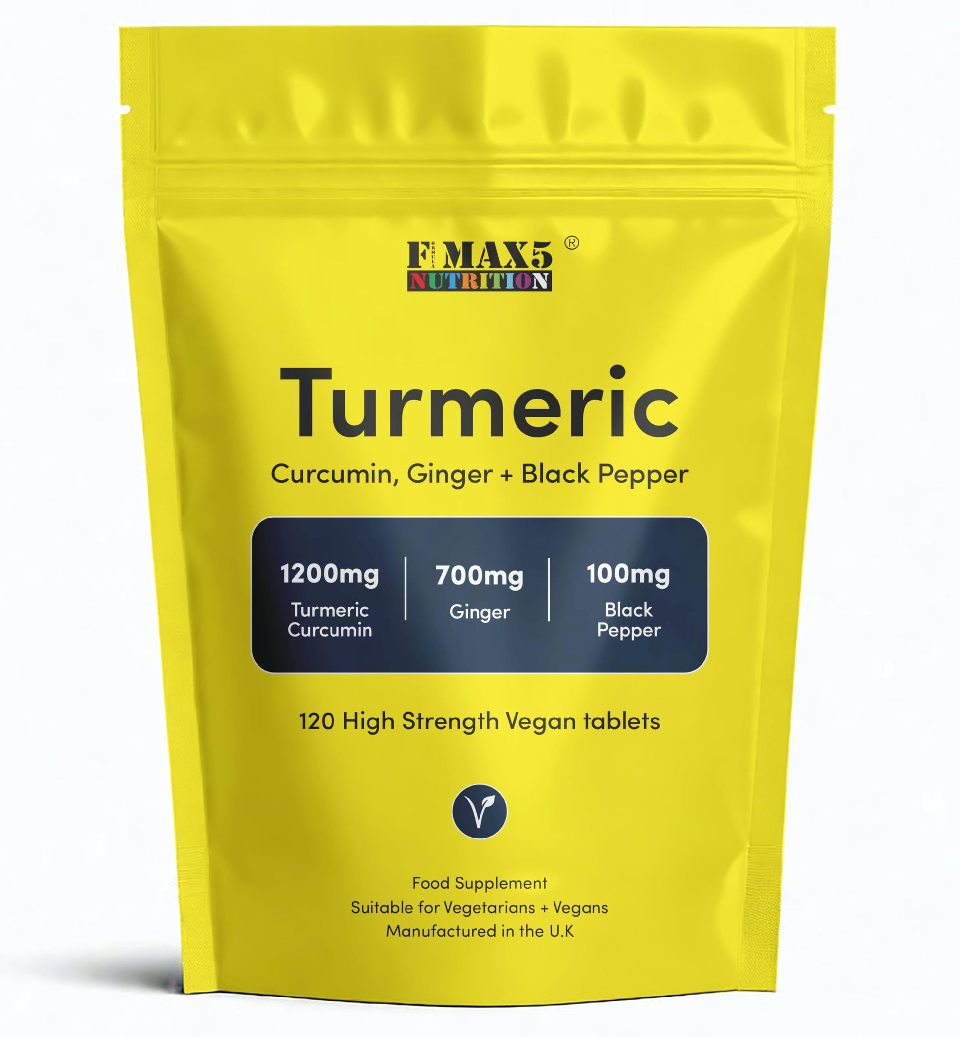 formula max5 nutrition Turmeric Tablets 2400mg (per Serving) with Black Pepper & Ginger | 120 High Strength Curcumin Supplements | Vegan and Gluten Free | UK Made