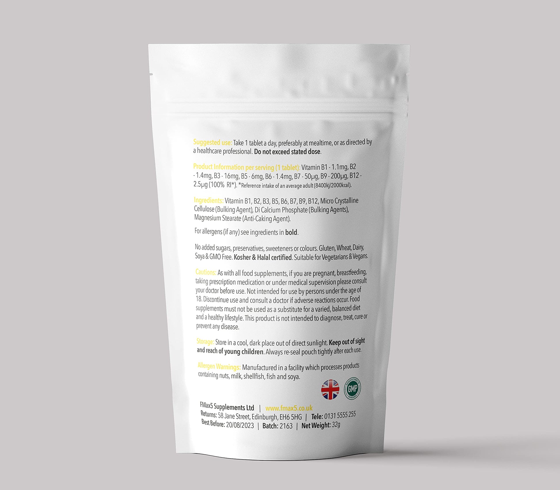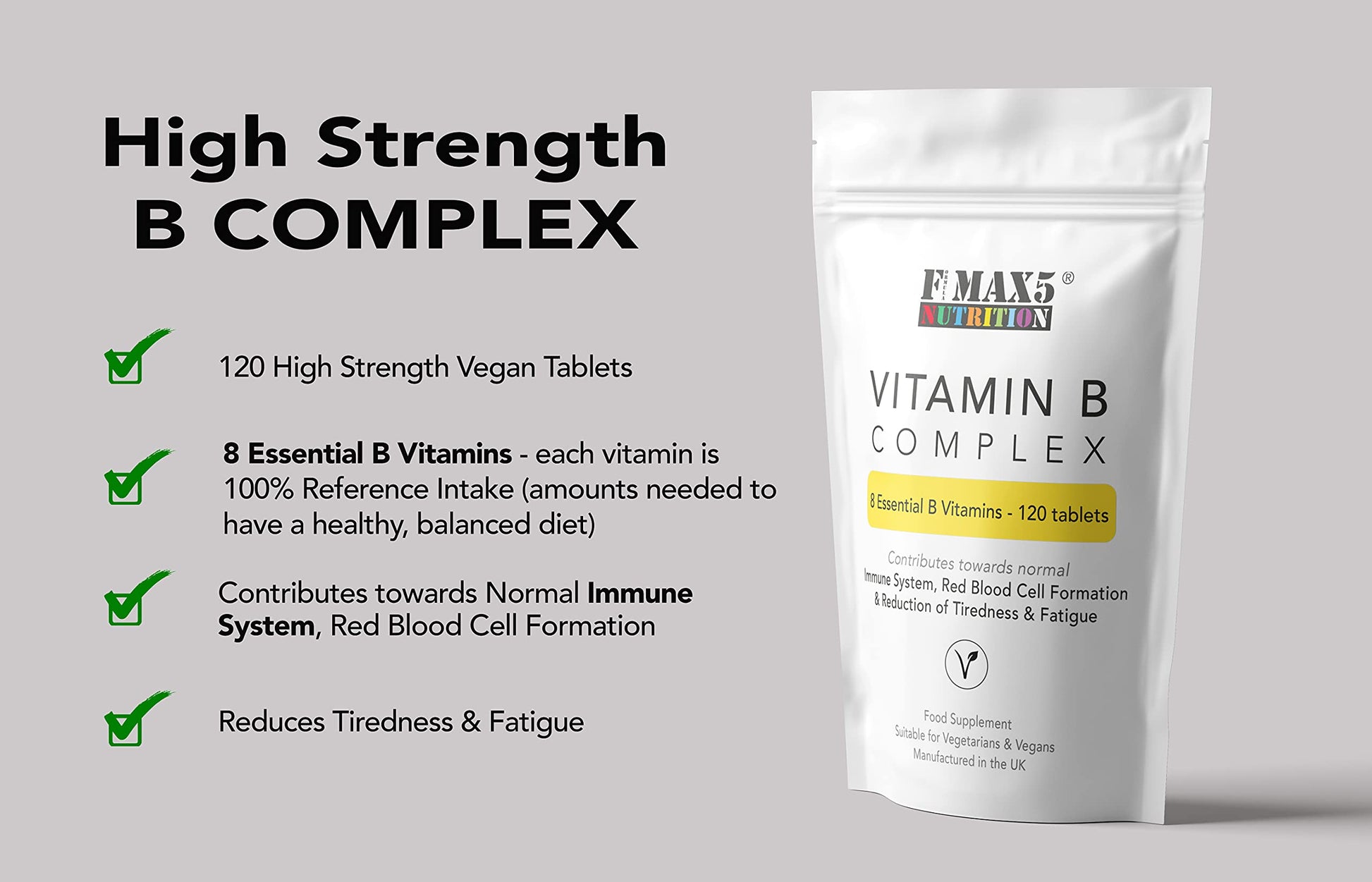 formula max5 nutrition Vitamin B Complex 120 Tablets (4 Month Supply) - Contains All Eight B Vitamins in 1 Tablet, Vitamins B1, B2, B3, B5, B6, B12, Biotin & Folic Acid by Fmax5 Supplements