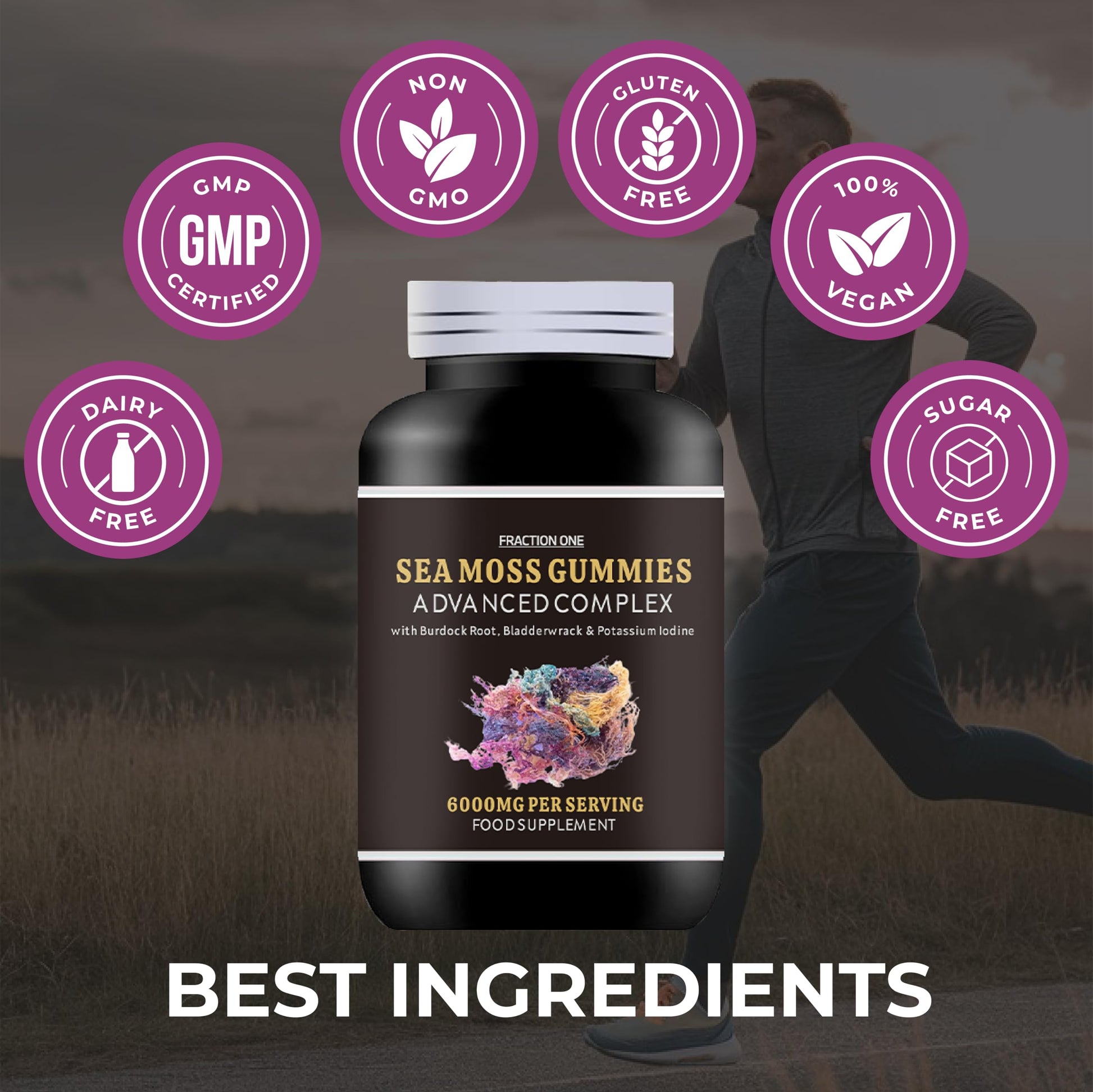 Fraction One Irish SEA Moss Gummies | 120 Gummies | HIGH Strength | 6000MG | Advanced Complex | Irish SEA Moss | Burdock Root | BLADDERWRACK | Potassium Iodine |Sugar Free | 60 Servings | 2 Months Supply | Vegan