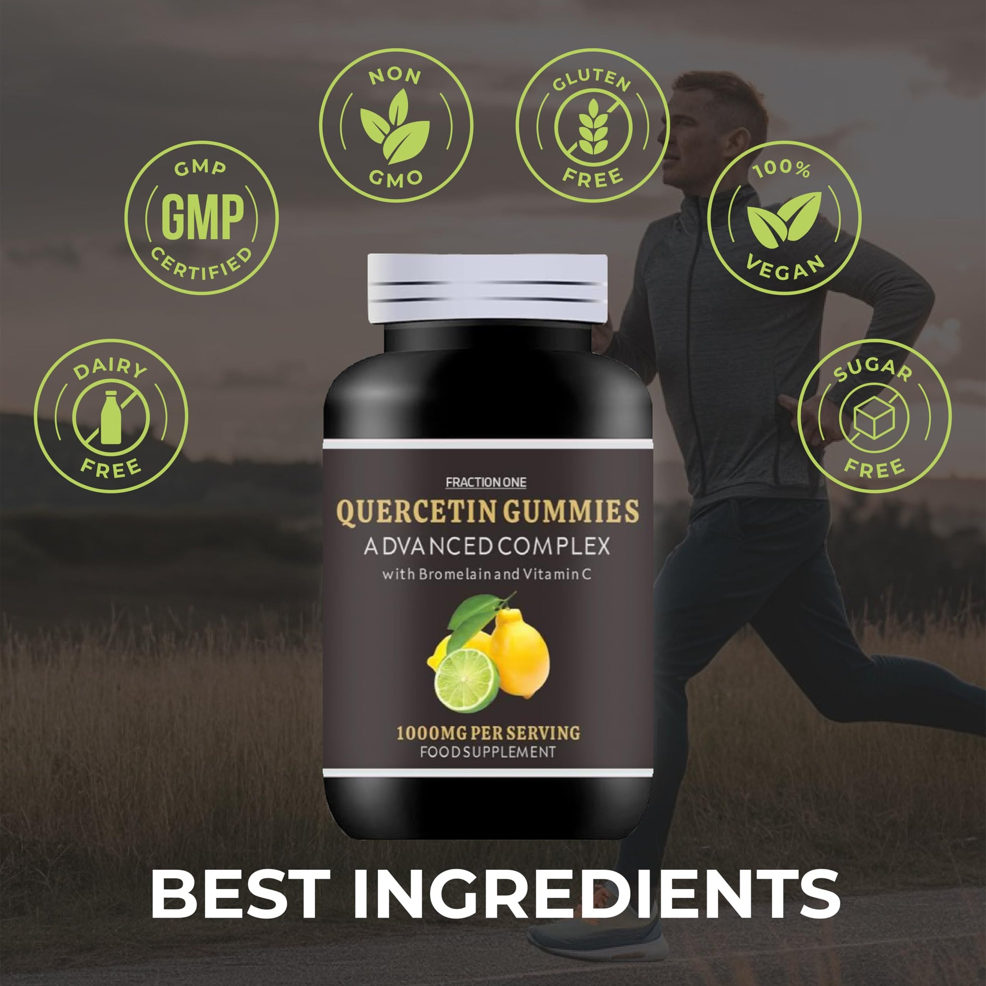 Fraction One Quercetin Gummies Enhanced with Bromelain, Vitamin C - Quercetin 1000mg - 120 Gummies - 60 Servings - Quercetin Complex - Quercetin Supplement -Antioxidant Supplement for Immune Support
