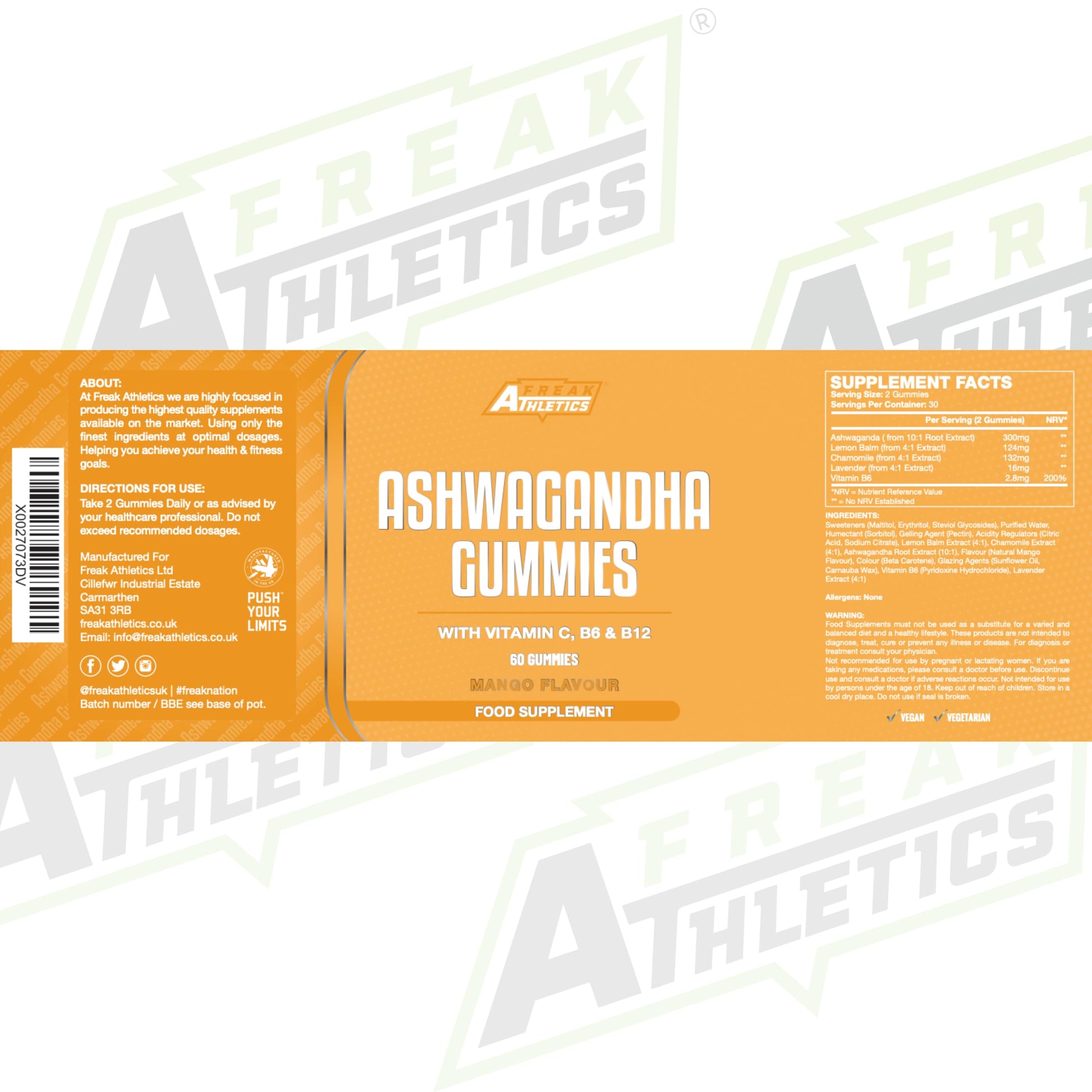 Freak Athletics Ashwagandha Gummies with Vitamin B6, 3000mg High Strength, 60 Count