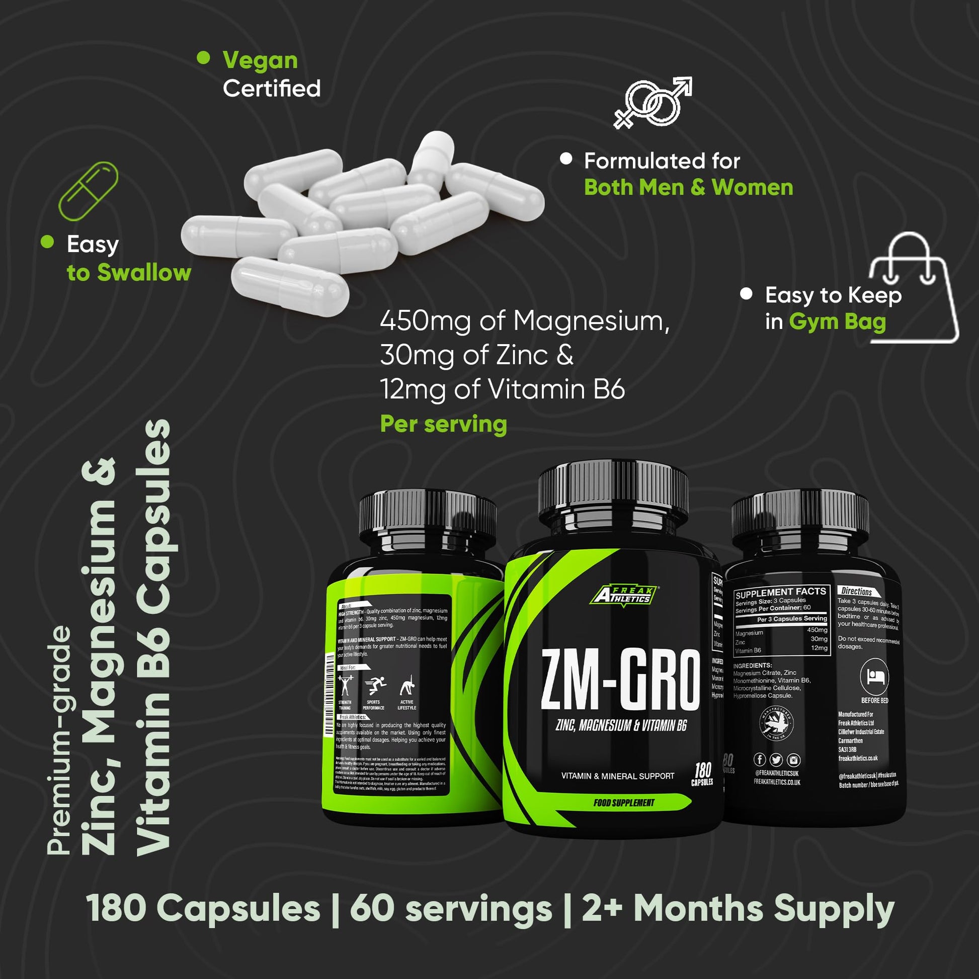 ZM-GRO - Zinc, Magnesium & Vitamin B6 Capsules | 180 Vegan Capsules | Muscle Recovery, Sleep & Immune Support | High Absorption Formula | Made in the UKMore Info
