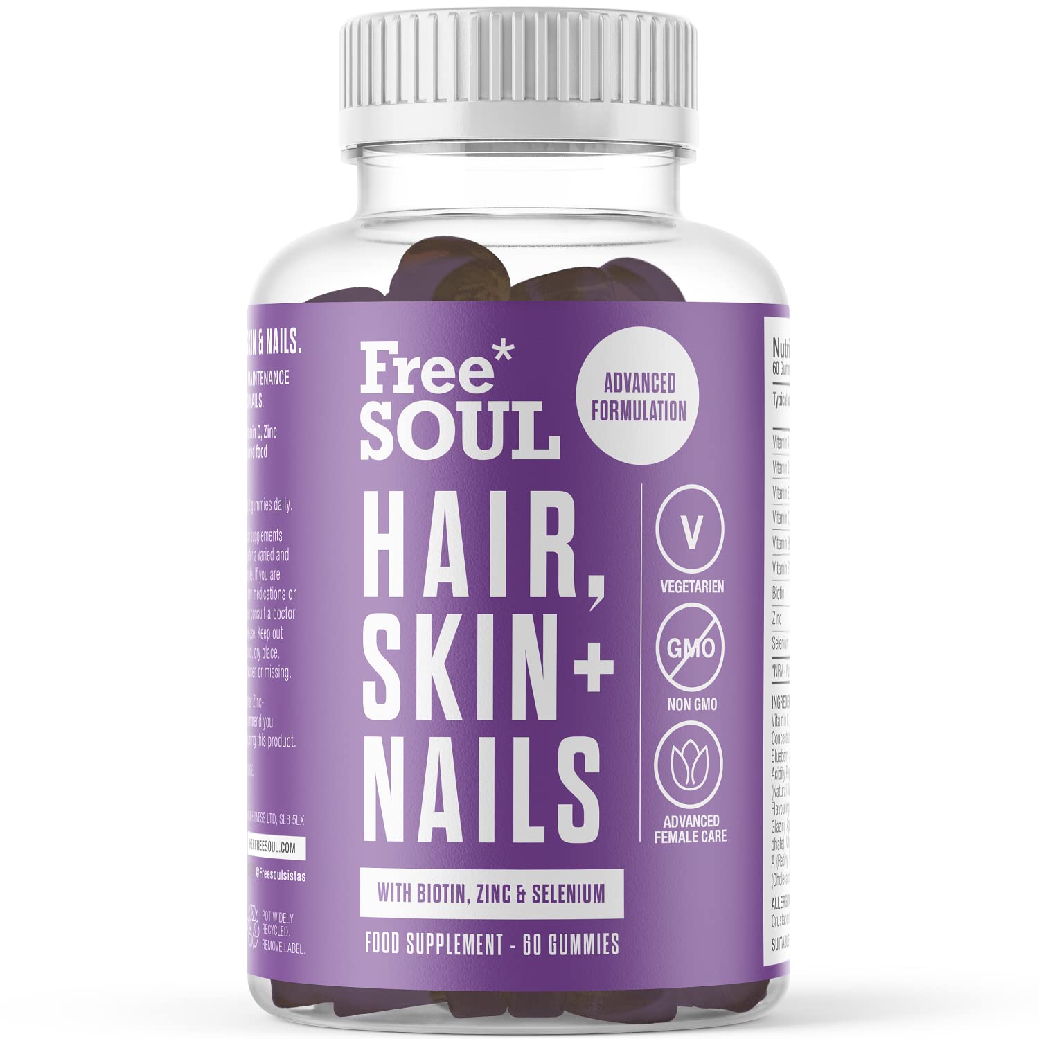 Free Soul Biotin Hair Supplement – Hair, Skin, & Nails Gummies – Delicious Chewable Hair Skin and Nails Vitamins – Biotin Enhanced with Vitamins B6, B12, Zinc, Selenium, E, A, C & D – 60 Gummies