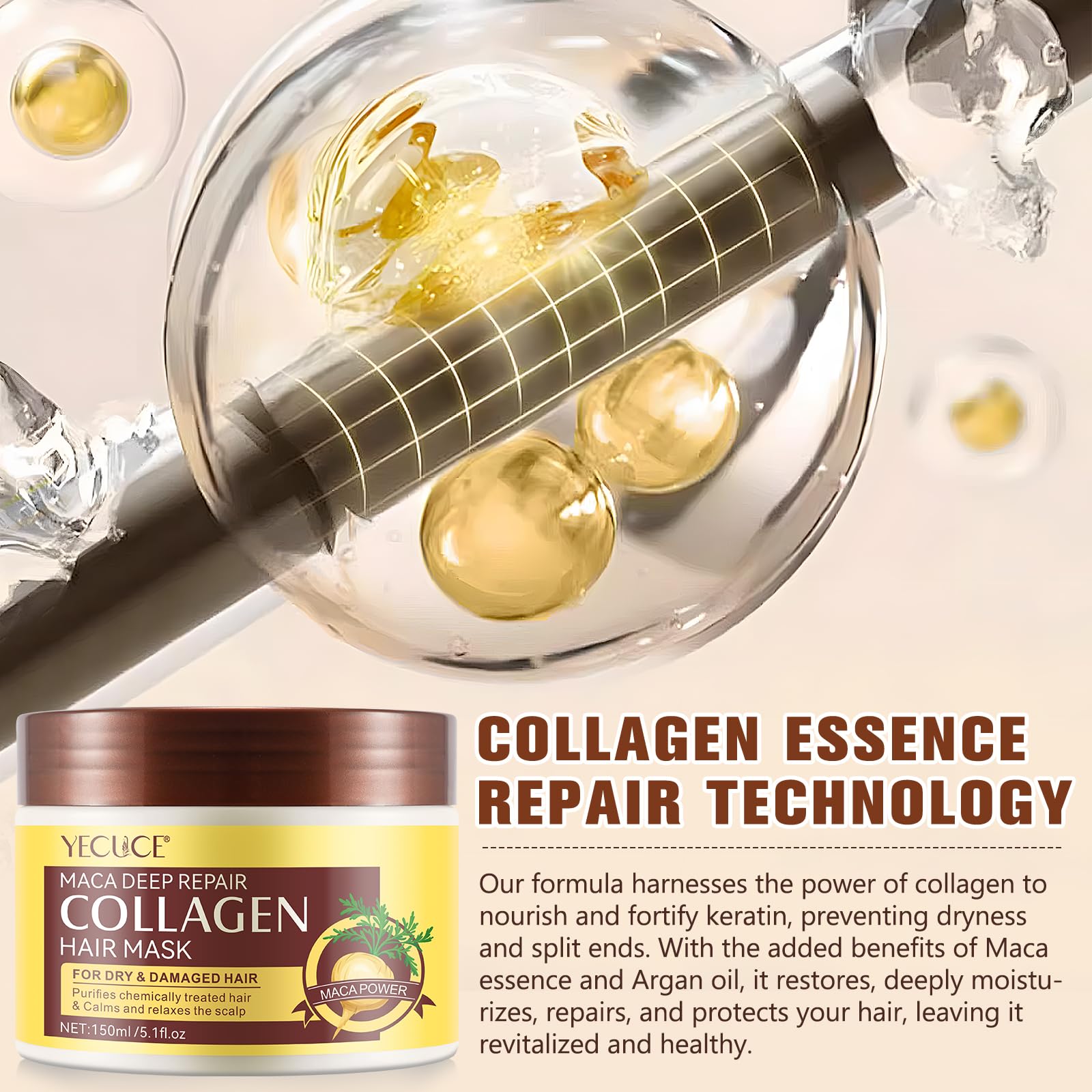 Maca Collagen Repair combines the nourishing power of Maca Essence, the strengthening benefits of Hydrolyzed Collagen, and the hydrating properties of Moroccan Argan Oil to revitalize dry and damaged hair. Our unique blend deeply moisturizes, repairs, and protects, leaving your hair silky, shiny, and resilient.Benefits: