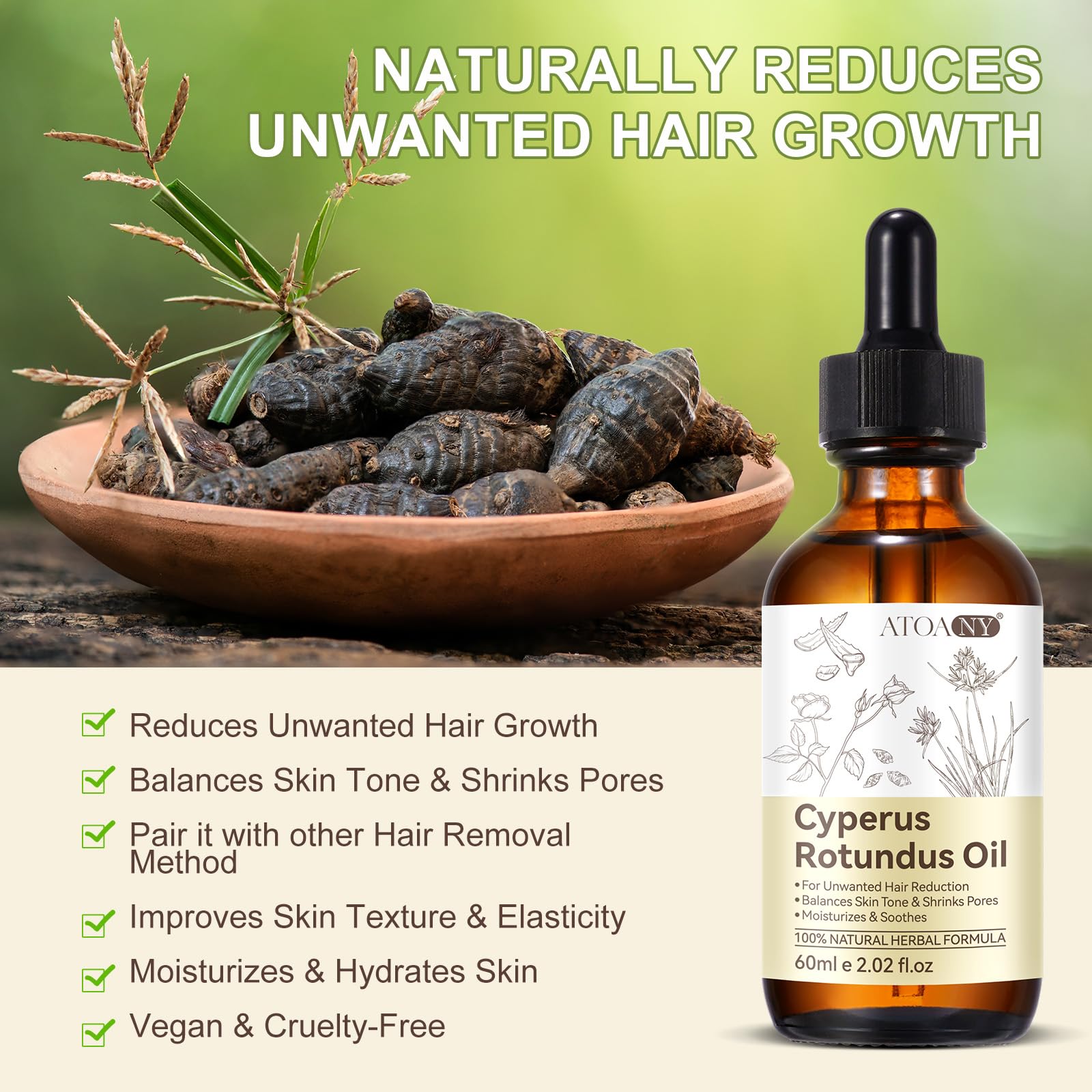 Cyperus Rotundus Oil, Natural Cyprus Oil, Reduces Unwanted Body Hair, Smooth Skin & Hair Removal, Reducing Body Hair Growth, Moisturizing & Soothing for All Skin Types, 2.02 oz (2)More Info