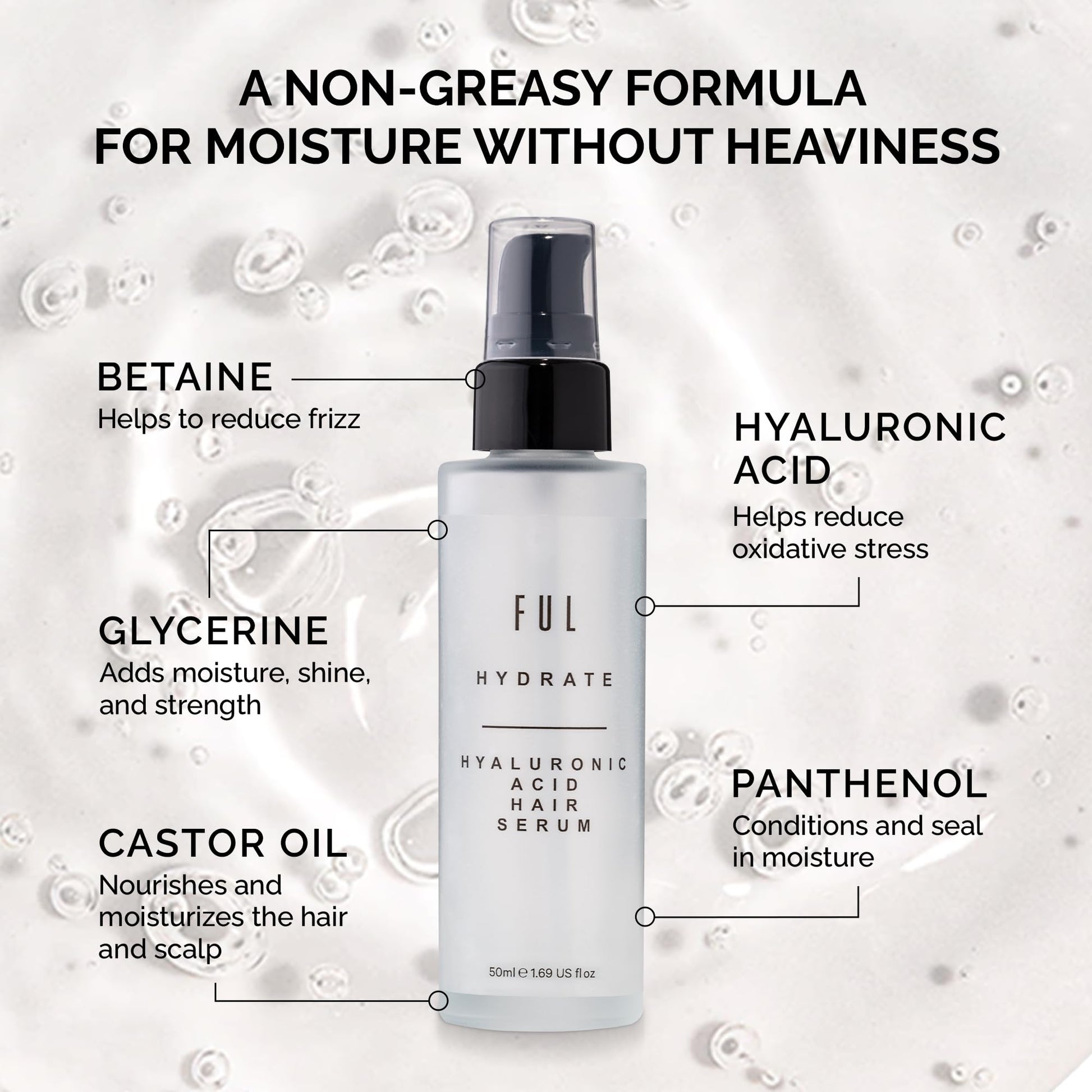 FUL Hyaluronic Acid Hair Serum | Hyaluronic Acid Serum To Tame Frizz, Flyaways and Smooth Hair | Lightweight Leave-In Anti Frizz Hair Serum With Hyaluronic Acid, Panthenol & Glycerine | Made in UK