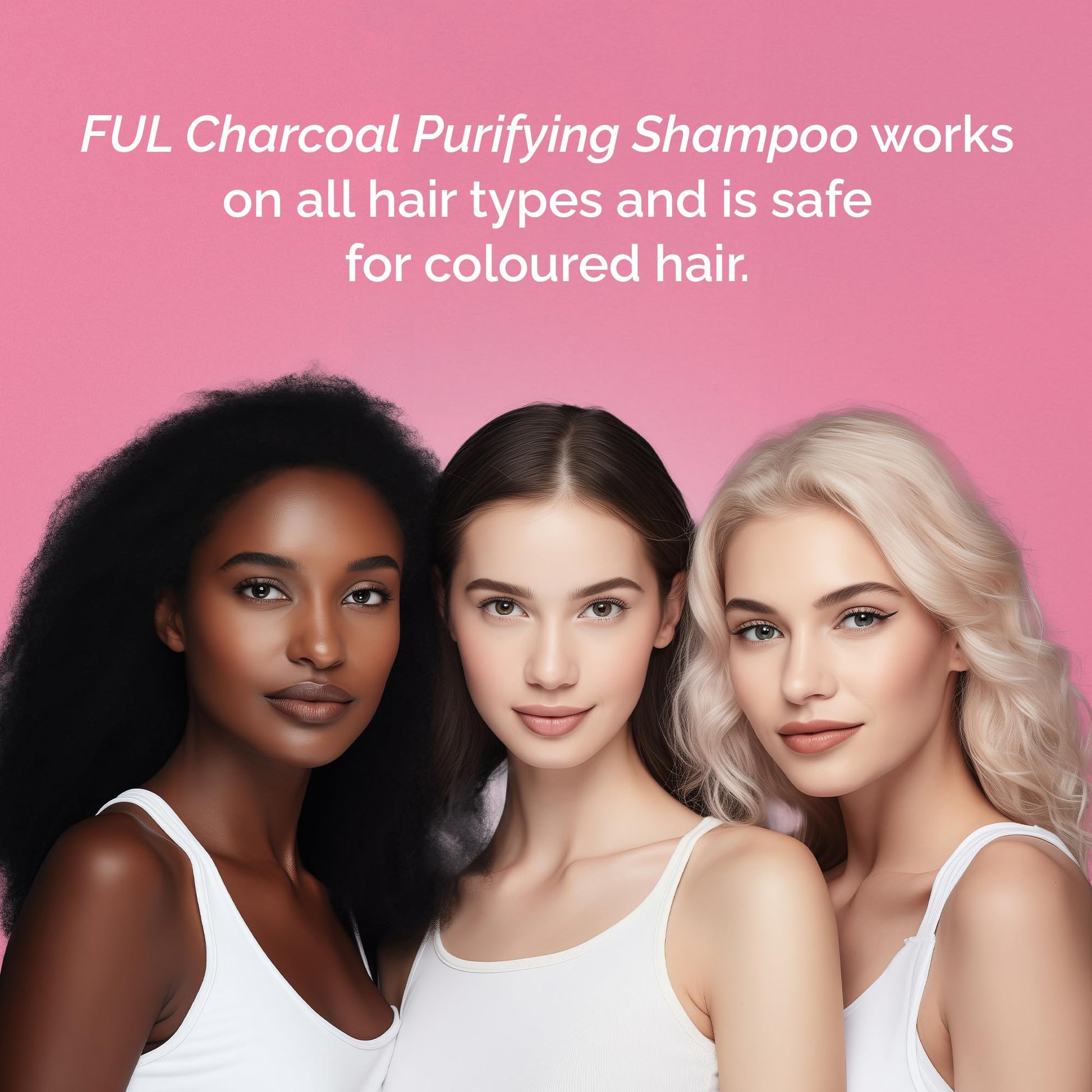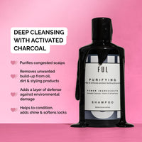 FUL Purifying Charcoal Shampoo | Clarifying Shampoos to Remove Build Up, Excess Oil, and Pollutants | Vegan Sulfate Free Shampoo | Shampoo for Greasy Hair | Deep Cleansing Shampoo | Made in UK