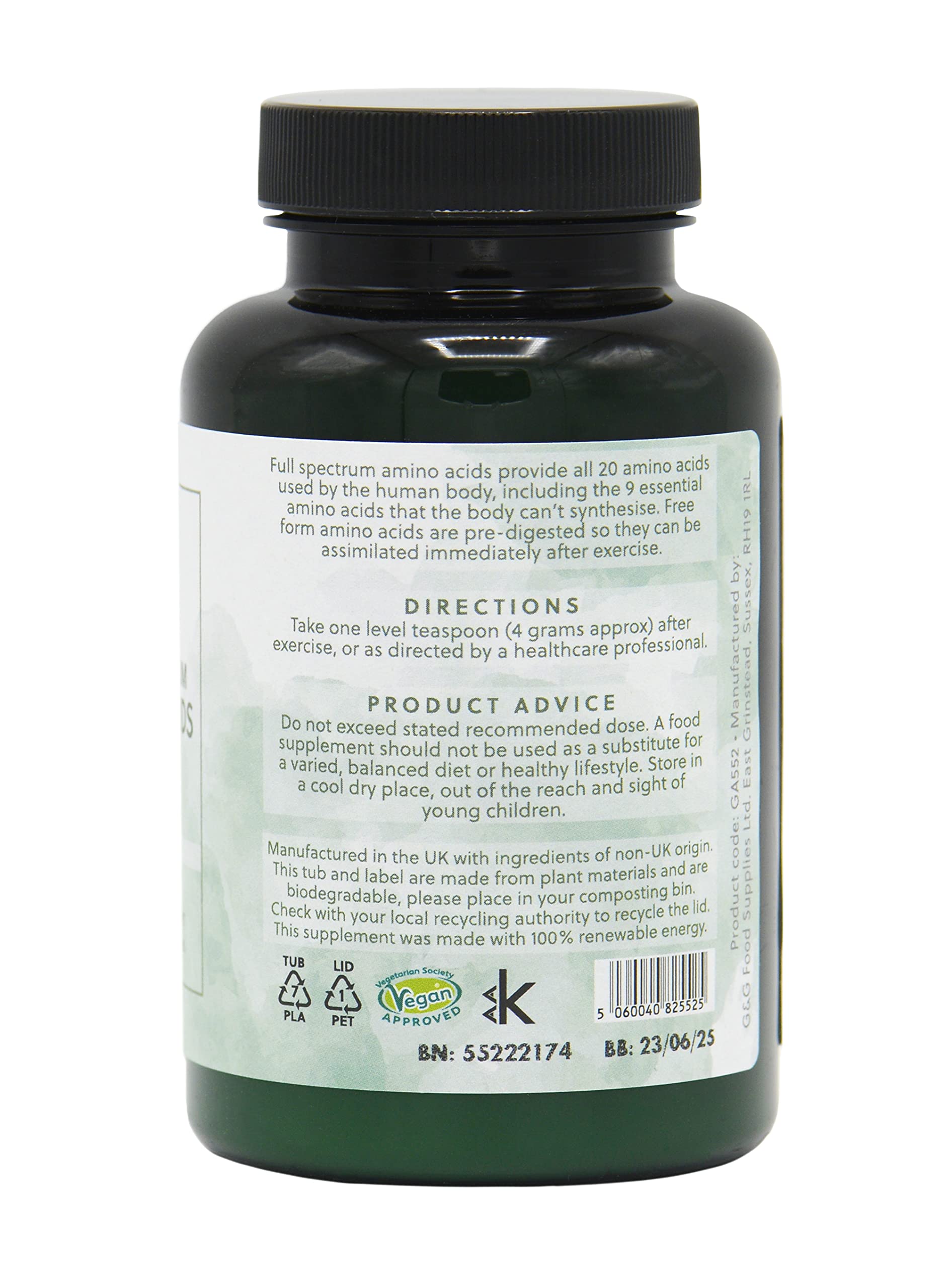 Full Spectrum Amino Acid Powder | BCAA | Vegan Free Form Amino Acids | 200g Powder | G&G Vitamins