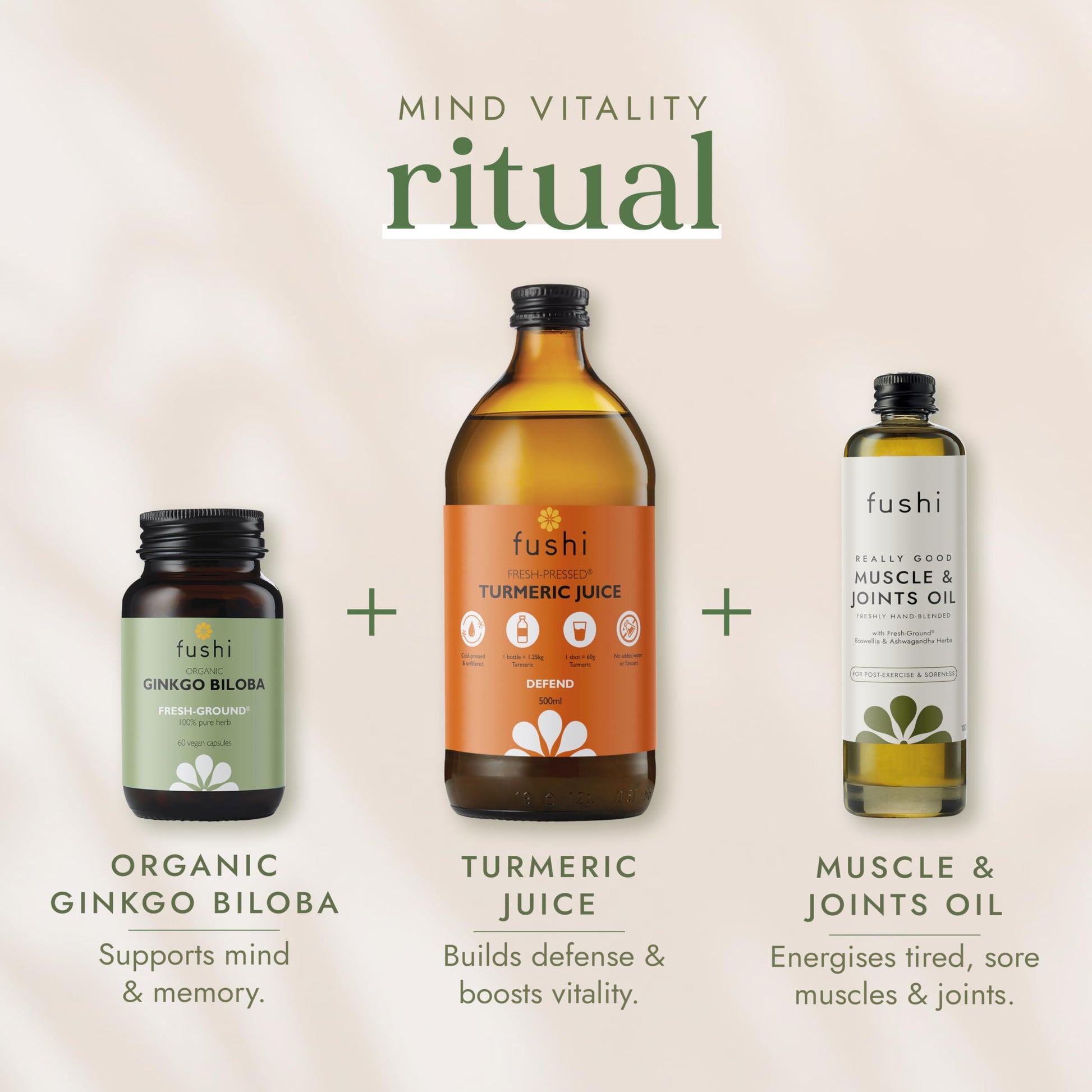 Fushi Organic Ginkgo Biloba Capsules, 60 Caps | Fresh-Ground Whole Food | Memory Boosting Properties | Ethical & Vegan | Made in the UK, Packaging may vary