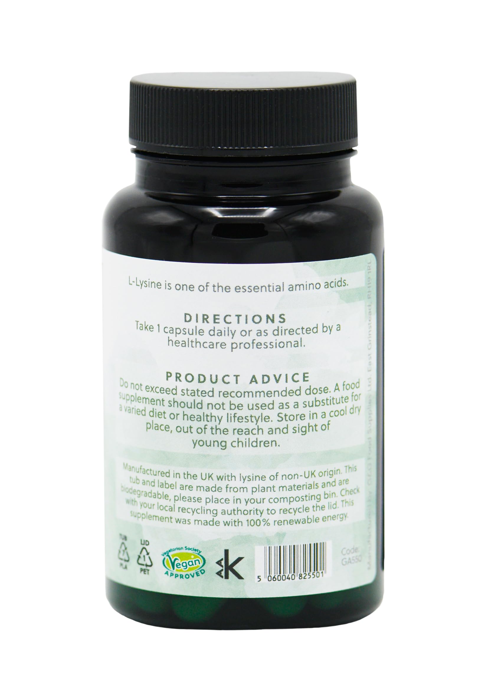 - L-Lysine is an essential amino acids - we require 2-3g a day. Vegetable proteins are low in lysine.