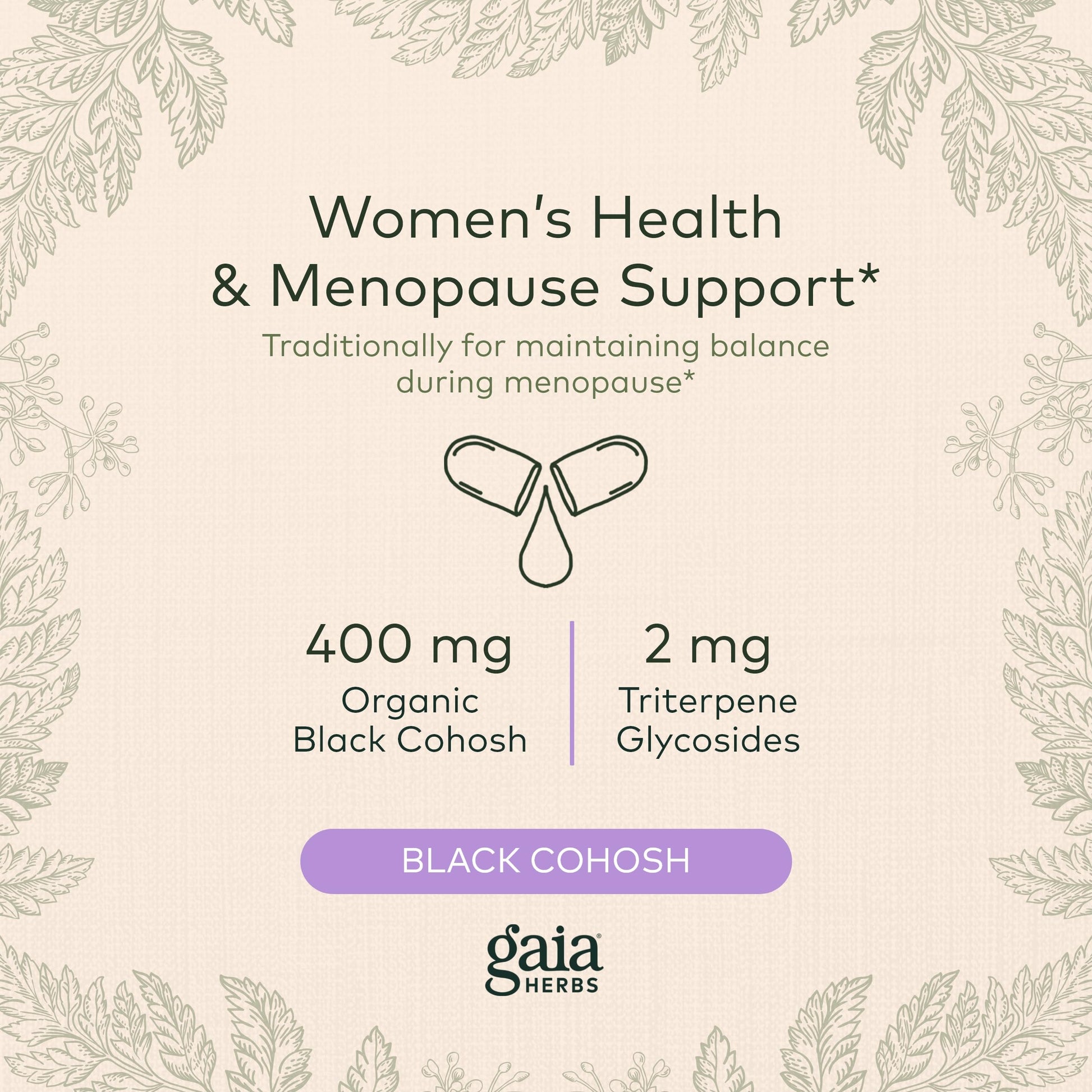 - Purity-Tested: Gaia Herbs Black Cohosh supplement is vegan, organic, and proudly made in NC, USA