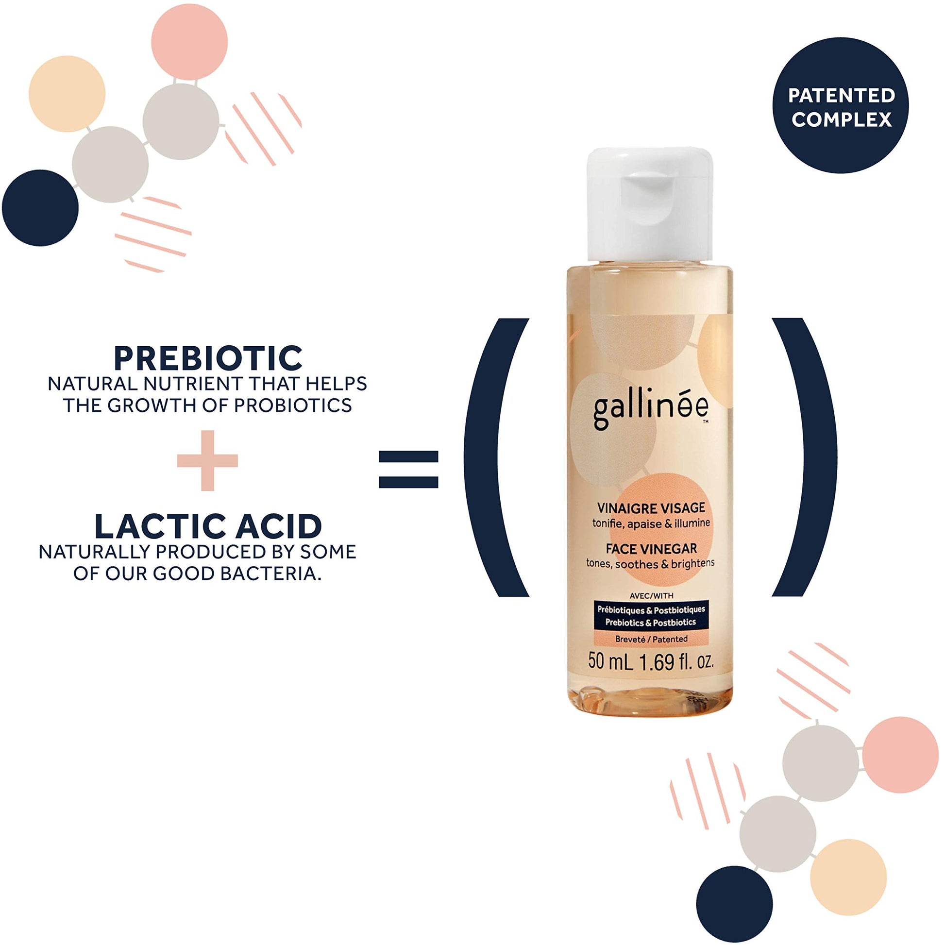 Gallinee Face Vinegar – Travel Size Natural Hydrating Prebiotic Facial Cleansing Toner with Lactic Acid, 50ml